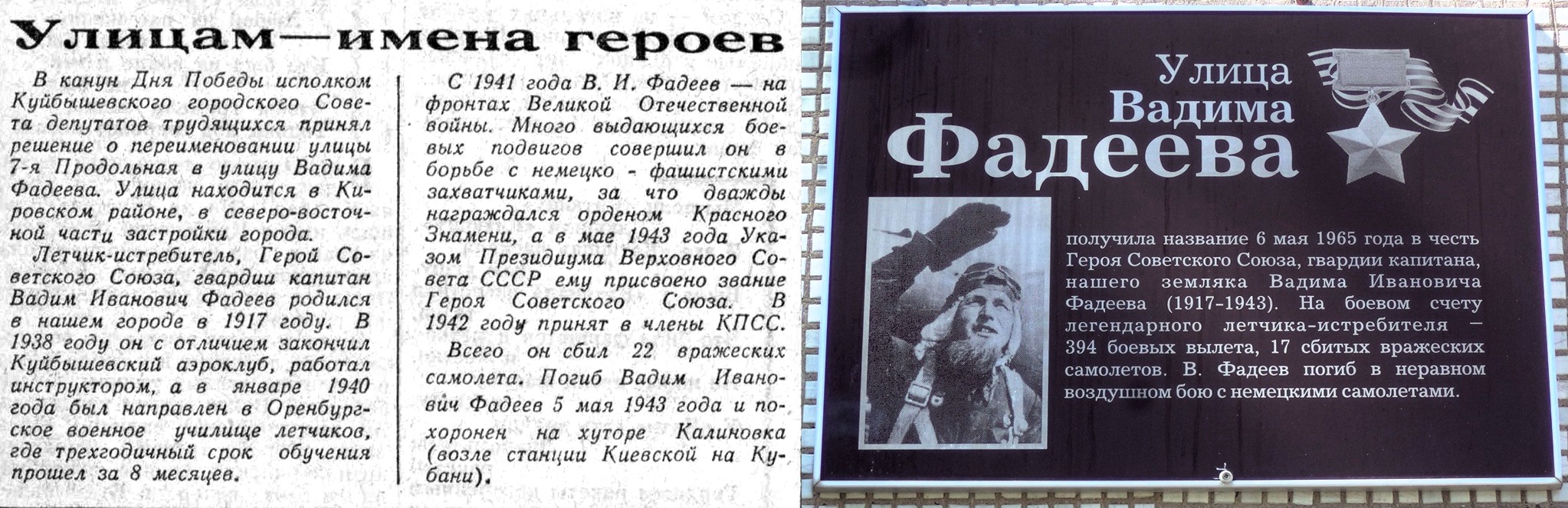 Символично, что в конце 1970-х годов на улице летчика Фадеева появилось общежитие Куйбышевского авиационного техникума.