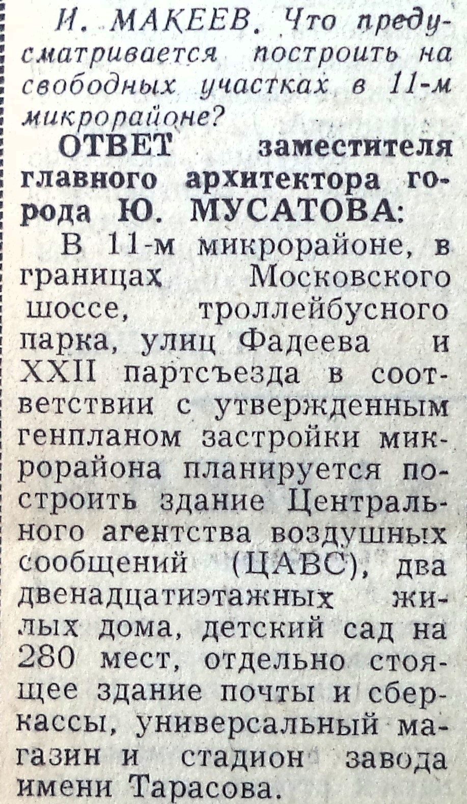 Забегая вперед скажем, что в 11-м микрорайоне мог быть построен еще более крупный объект, связанный с авиацией.