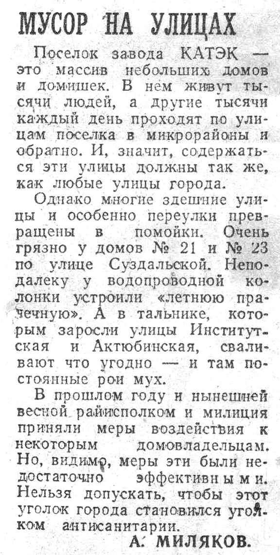 Заметка о неблагоустроенности поселка Карбюраторного завода была опубликована в «Волжской коммуне» в августе 1971 года. К концу десятилетия от него останутся только воспоминания.