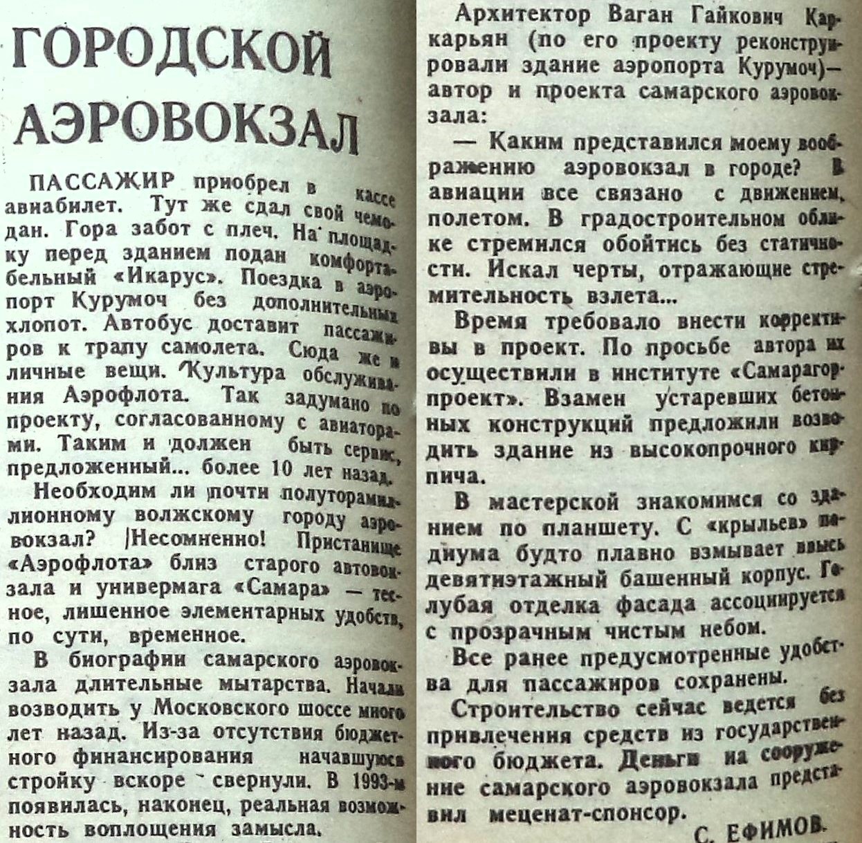 Видимо, средств загадочного «мецената-спонсора» на достройку здания не хватило. Проект Вагана Каркарьяна остался нереализованным. На месте городского аэровокзала в начале 2000-х годов был построен ТЦ «Парк Хаус».