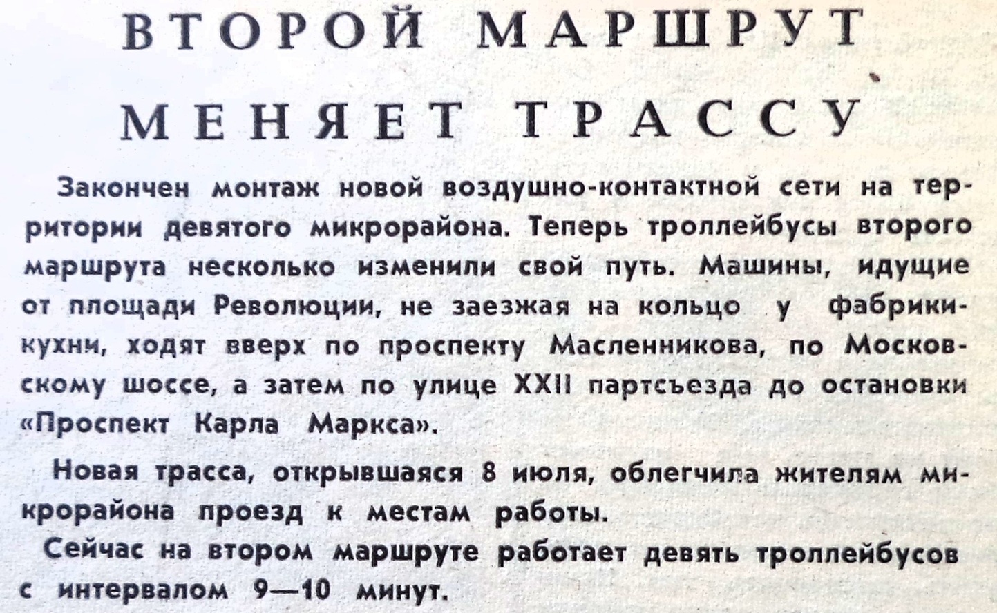 В середине 1960-х годов от улицы Стара-Загора до Московского шоссе продлили улицу XXII Партсъезда. В июле 1967 года здесь запустили движение троллейбусов.