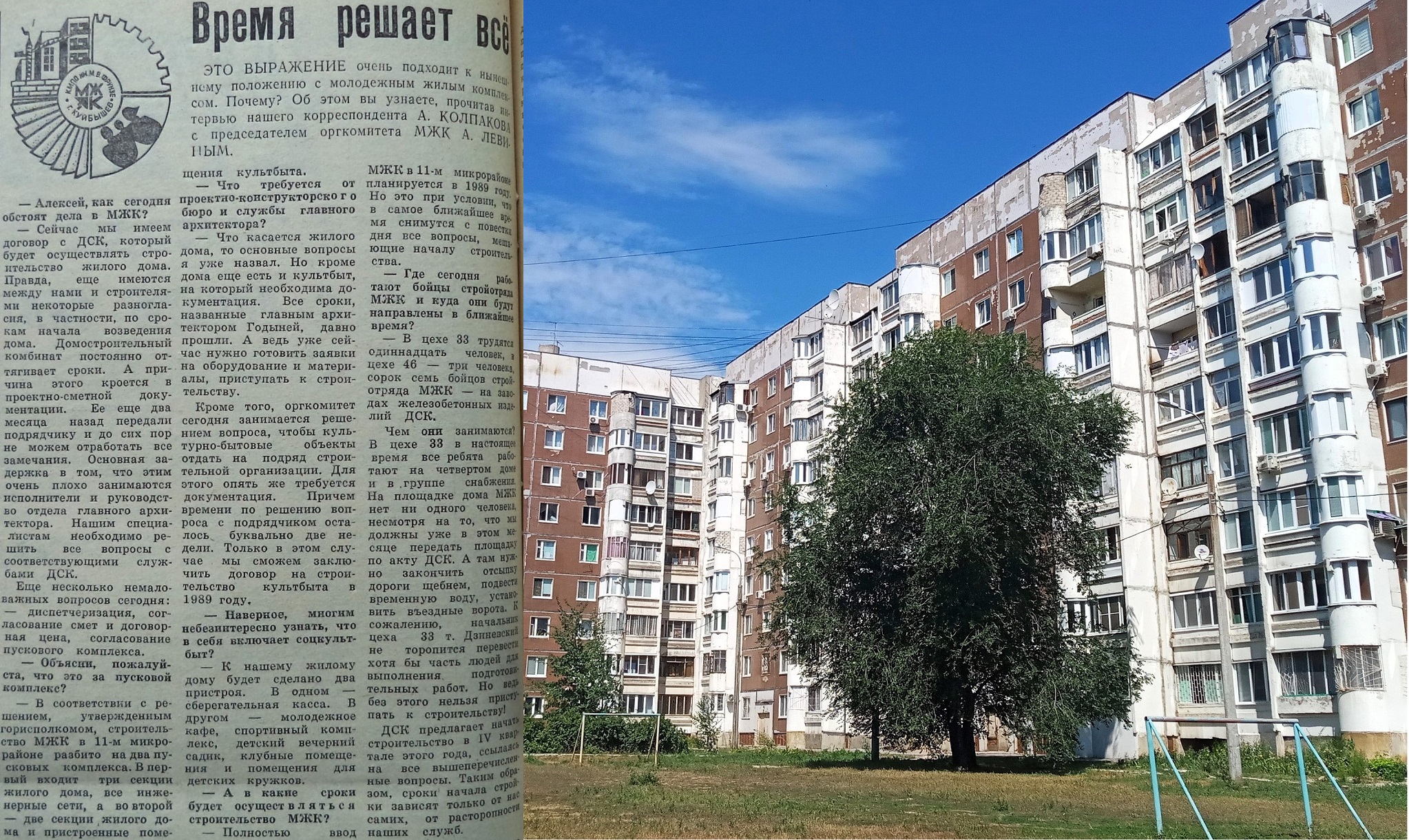 Панельки возвели в 1982 году. Примерно тогда же на месте нынешней второй очереди и парковки ТЦ «Парк Хаус» был обустроен стадион «Искра», принадлежавший заводу им. Тарасова.