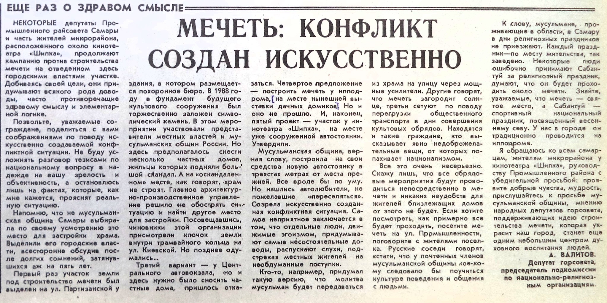 Самой грандиозной стройкой лихих 90-х в рассматриваемом нами районе стала Соборная мечеть. В советское время единственный в Куйбышеве мусульманский молельный дом находился в небольшом здании близ перекрестка улиц Промышленности и Аэродромной.