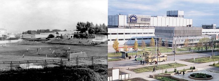 Обратите внимание, что в объявлении 1968 года адрес стадиона указан очень общо — проспект Карла Маркса, 8-й микрорайон.
