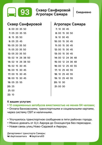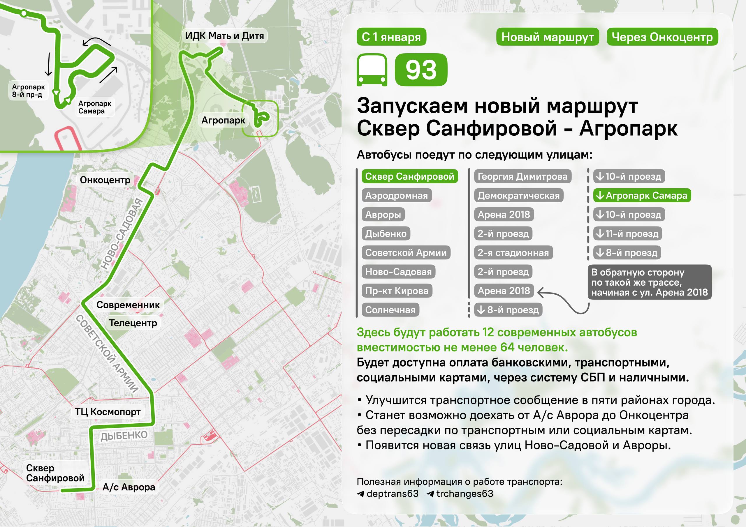 С 1 января 2026 года по Самаре ходит новый автобус — маршрута № 93.