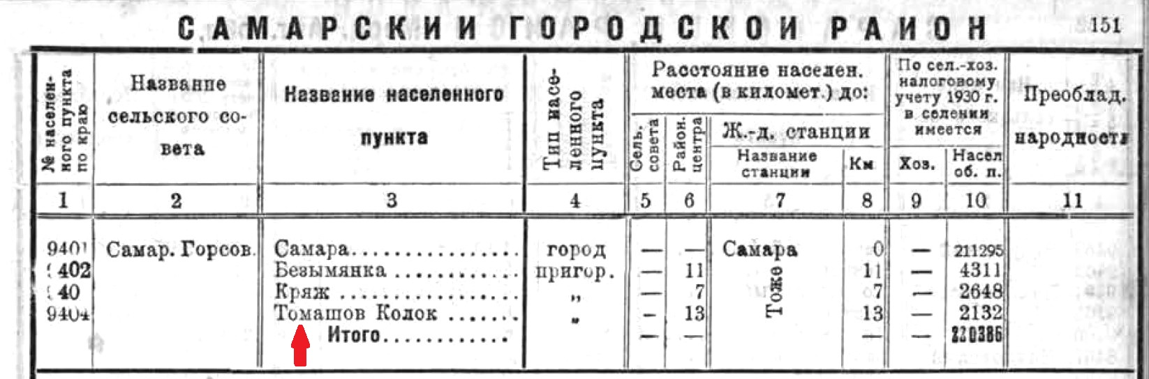 В списке населенных пунктов Средневолжского края за 1931 год Томашов Колок представлен уже крупным населенным пунктом. В нем проживало более 2000 человек!