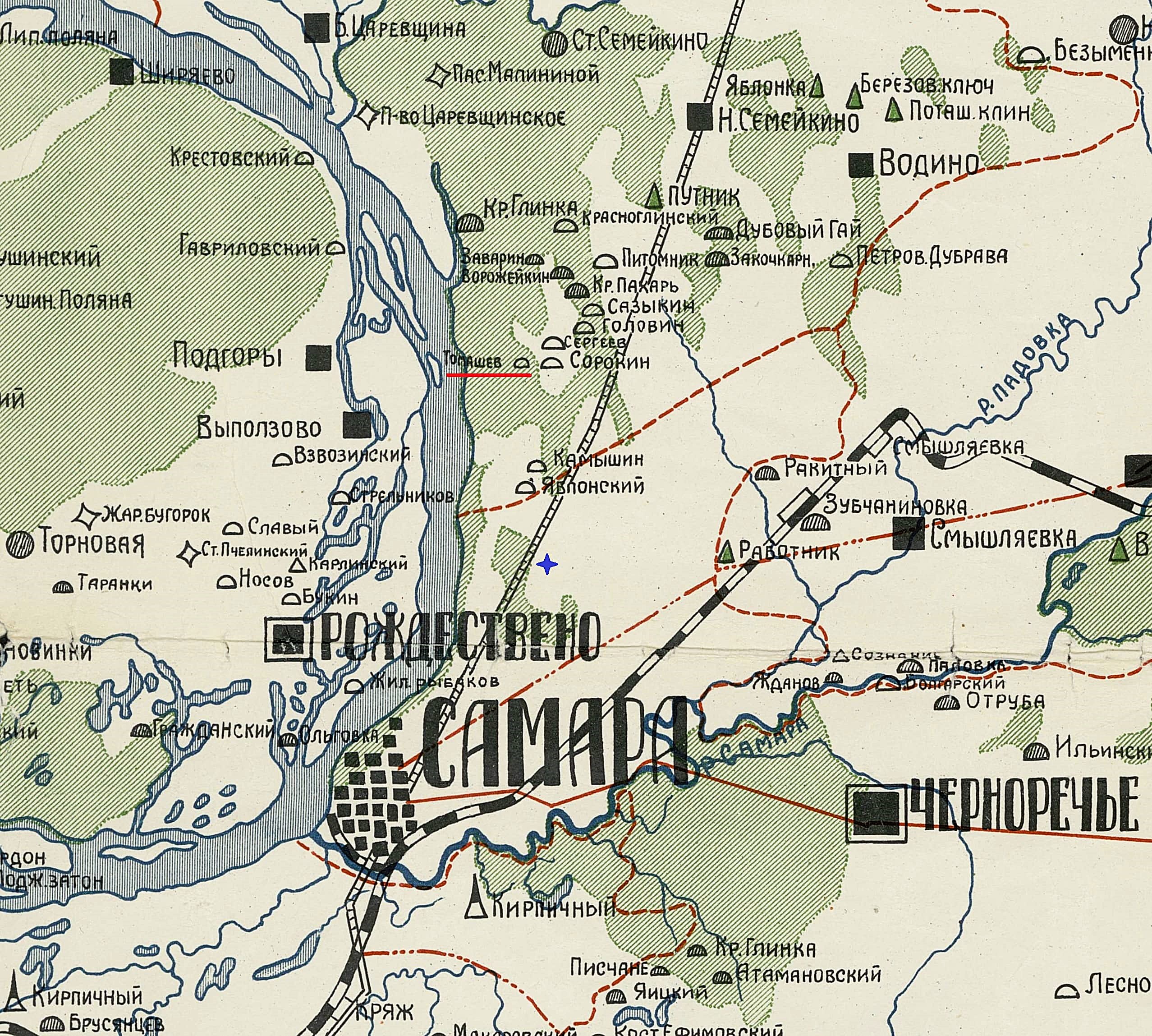 На карте Самарского уезда 1928 года ее составители почему-то поместили Томашев в район Сорокиных хуторов.