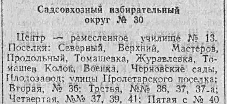 В списке избирательных округов по выборам в Куйбышевский областной Совет депутатов трудящихся за октябрь 1950 года перечислены поселки, большая часть из которых находилась на территории и в окрестностях 8 и 12 микрорайонов.
