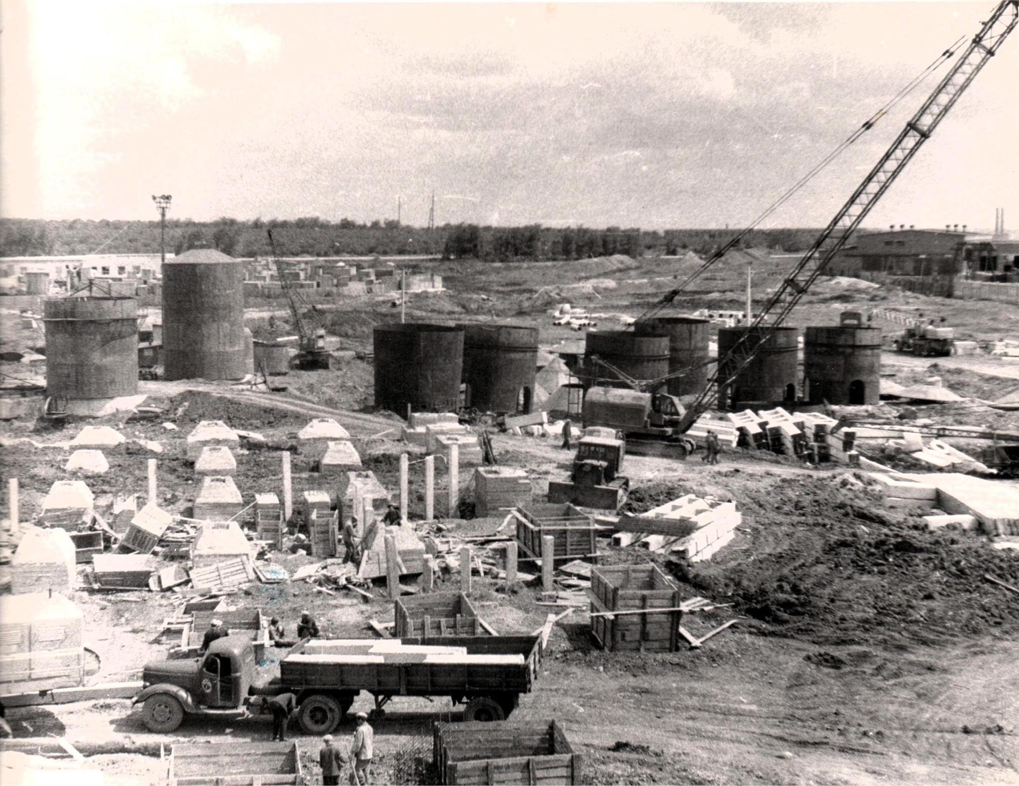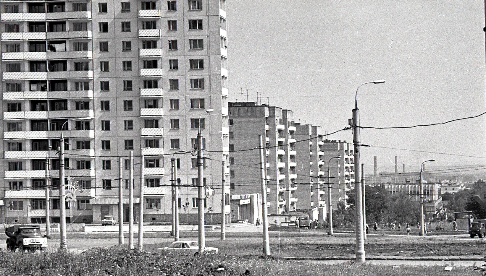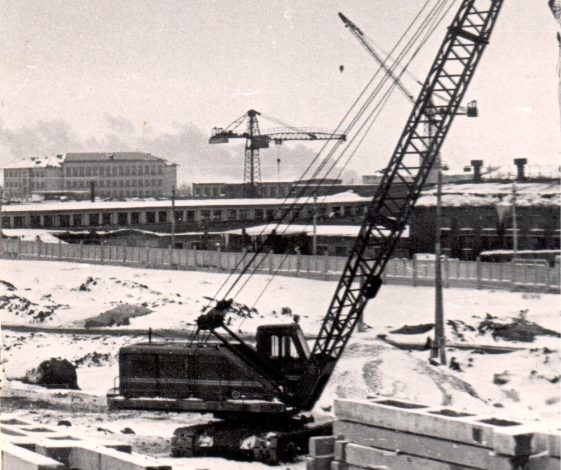 Его строительство началось в 1967 году на проспекте Кирова, рядом с территорией Сад-совхоза, угодья которого занимают задний план на следующем снимке.