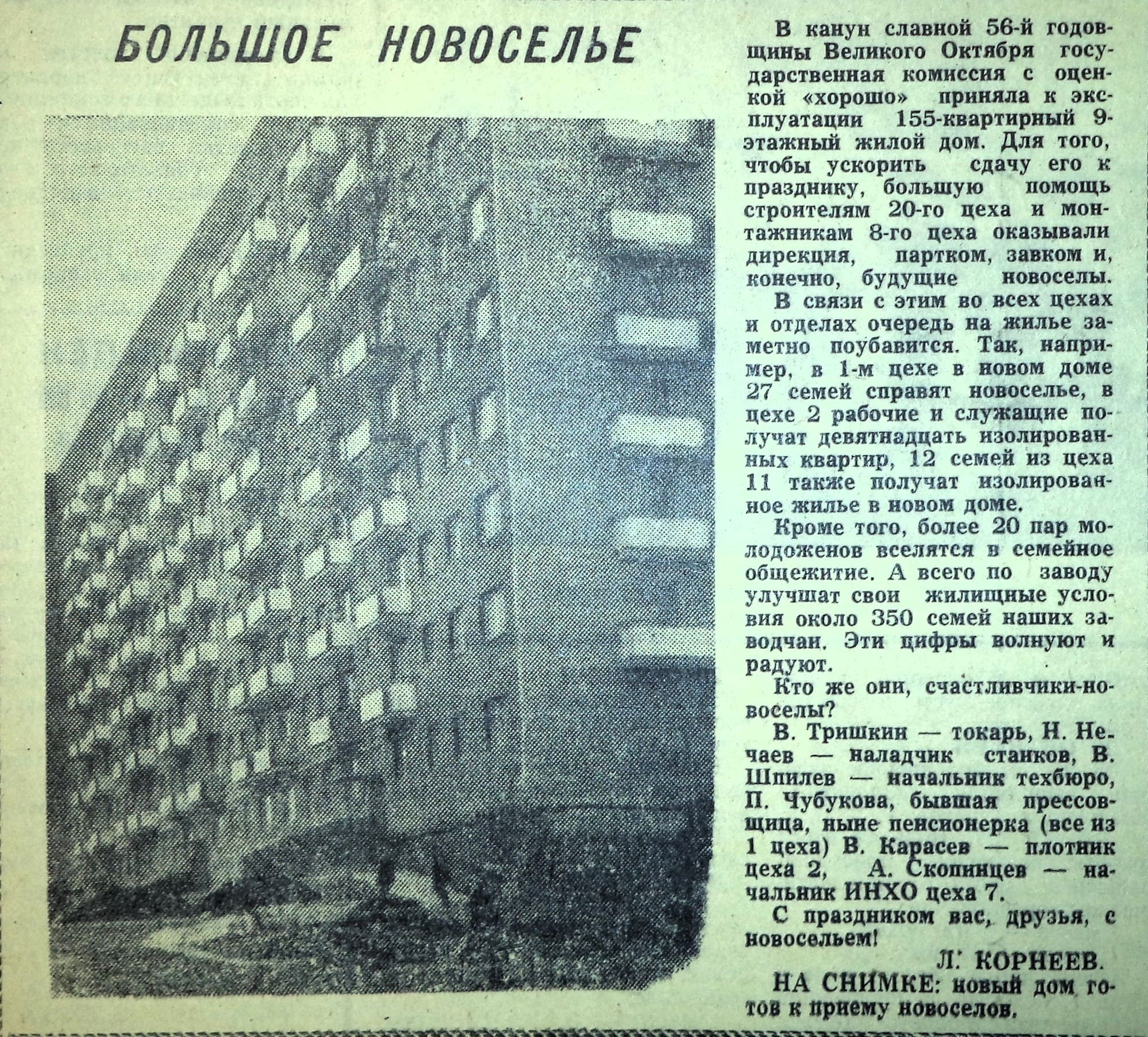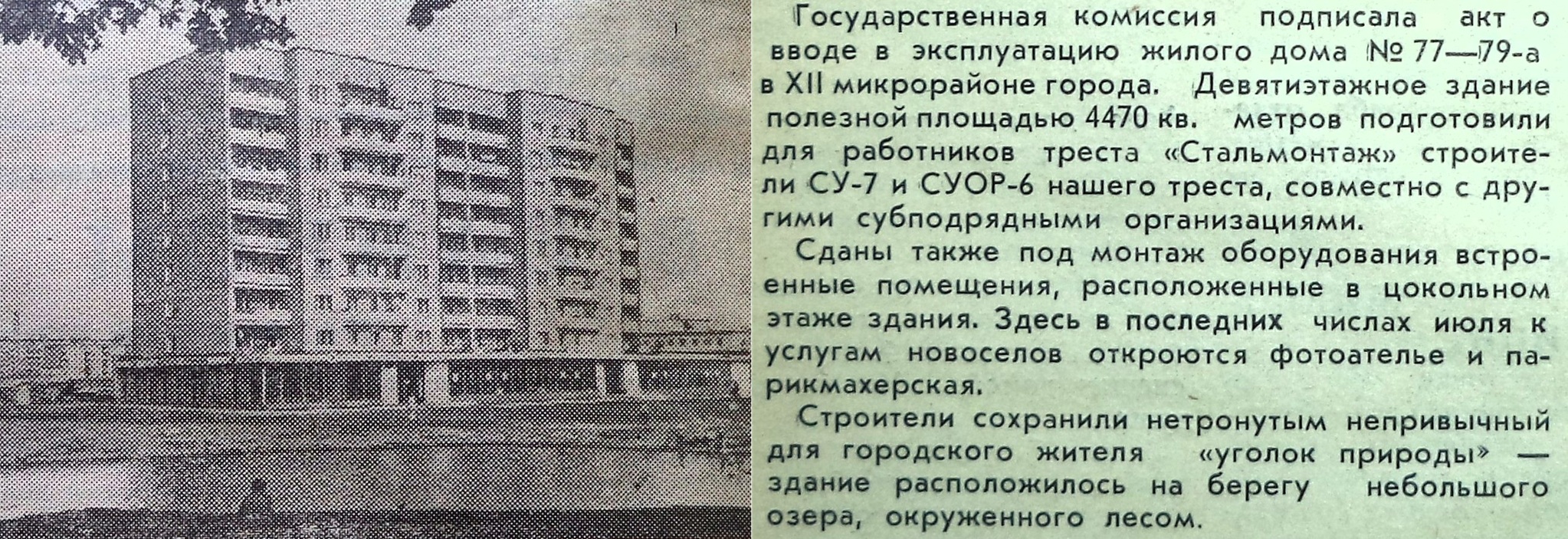 Строилась эта девятиэтажка пять лет. Последнюю секцию дома приняли в эксплуатацию в декабре 1976 года.