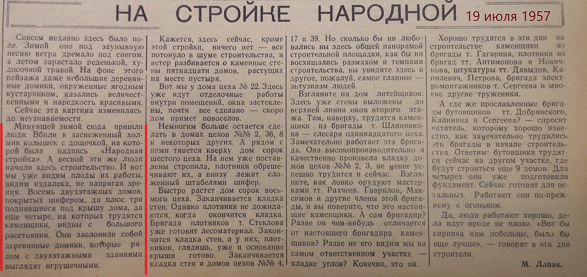 Но вернемся в конец 1950-х годов. В этот период на территории нынешнего 8 микрорайона появились первые многоквартирные дома. Речь идет о двухэтажках с адресами проспект Кирова, 162 и Коломенский переулок, 13. Их возвели в 1957 году методом «народной стройки» работники завода «Прогресс».