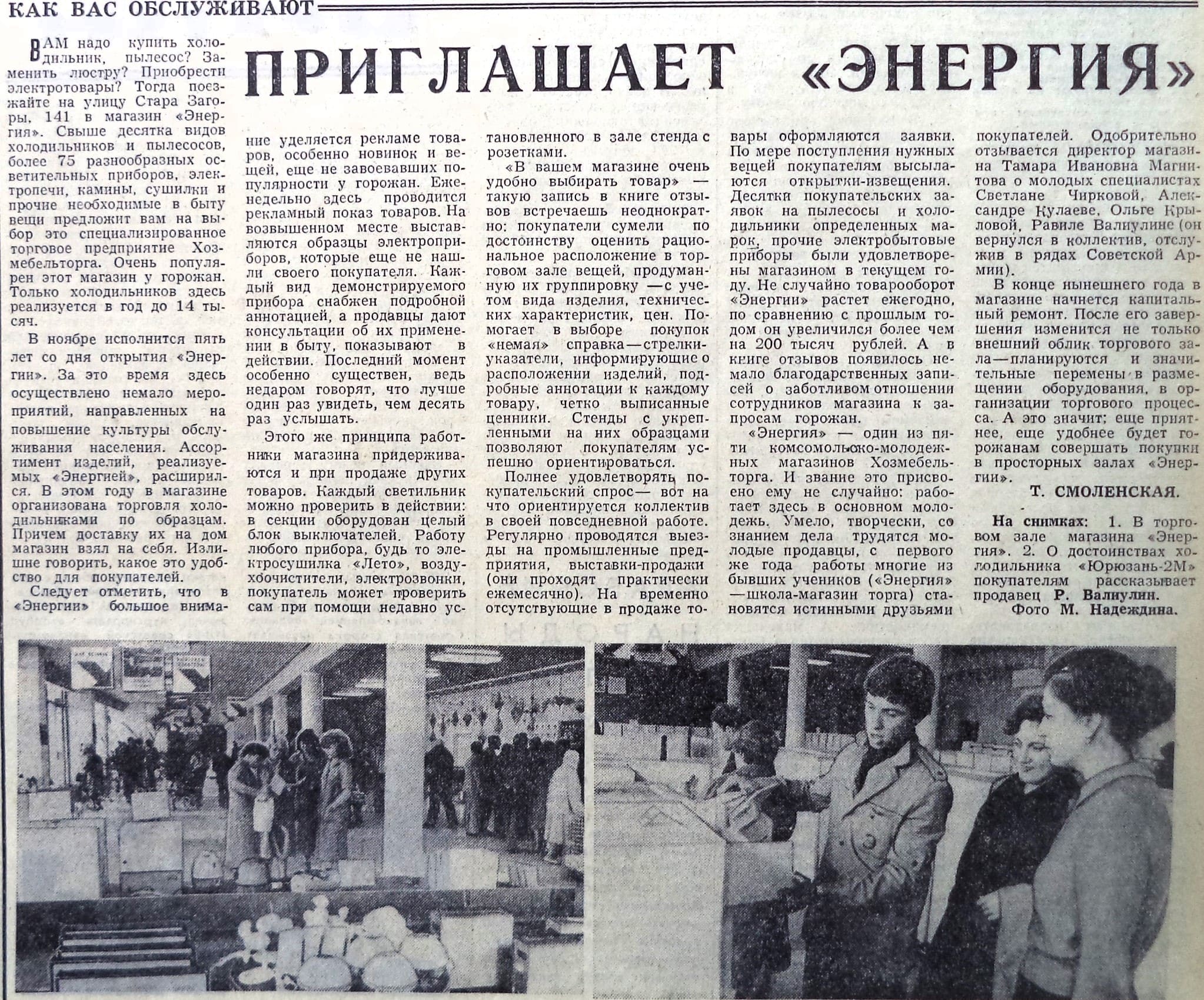 Так, в декабре 1977 года года в доме № 141 открылась «Энергия». Магазин электротоваров, чей ассортимент был весьма велик — от люстр до холодильников.