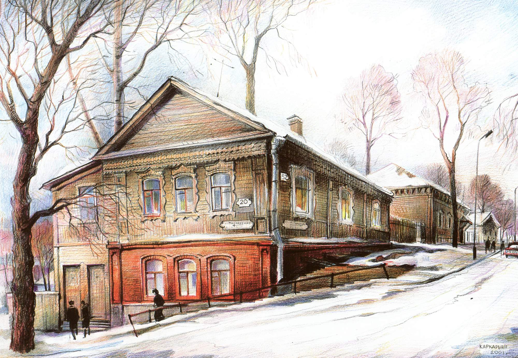 Дом Королевой до наших дней не сохранился, но мы можем посмотреть на него на рисунке архитектора Вагана Каркарьяна. Сейчас на этом месте высотка с адресом Алексея Толстого, 70.