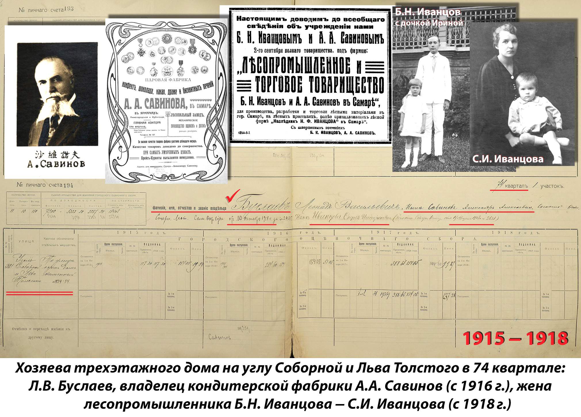 Аналогичная ситуация с финансами была и у Савинова. Исполняя военный заказ на производство карамели для нужд армии, часть доходов Александр Алексеевич направлял на покупку жилых зданий в Самаре.