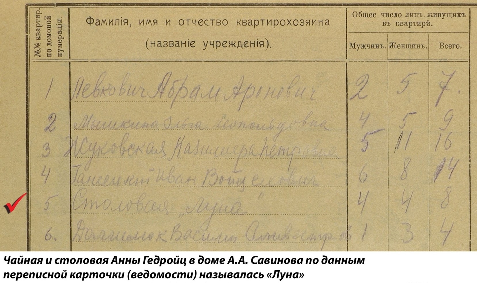 По данным расчетной книги за 1914 – 1917 годы о налоге на прирост прибылей торгово-промышленных предприятий, в новом доме Савинова в 1917 году работала чайная и столовая дворянки Анны Амвросиевны Гедройц.