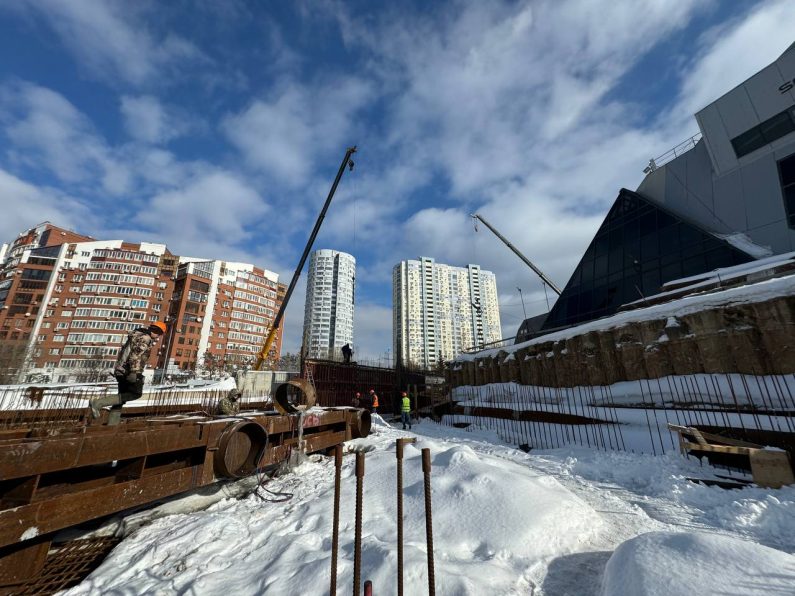 Сейчас на объекте возводят стены минус первого этажа, проводят монолитные работы в подземной части здания, которые планируется завершить весной 2026 года.