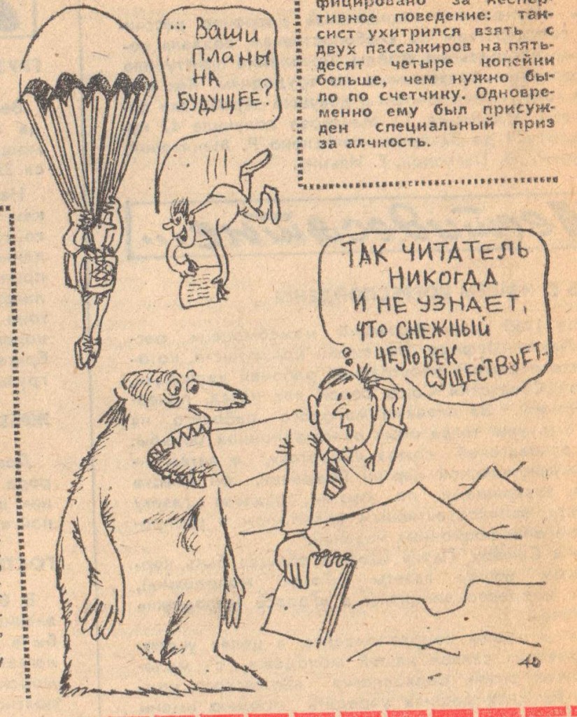 А когда люди, прочитавшие заметку о йети, Каптара не обнаружили, то стали возмущаться, мол, обман! На что журналисты сказали: «Читайте внизу публикаций надпись, напечатанную мелким шрифтом – «С 1 апреля, дорогой товарищ!»