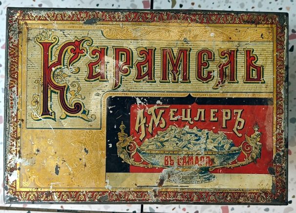 «Это жестяная коробка из-под карамели фабрики А. Мецлера в Самаре. Она — единственная из известных нам коробок.