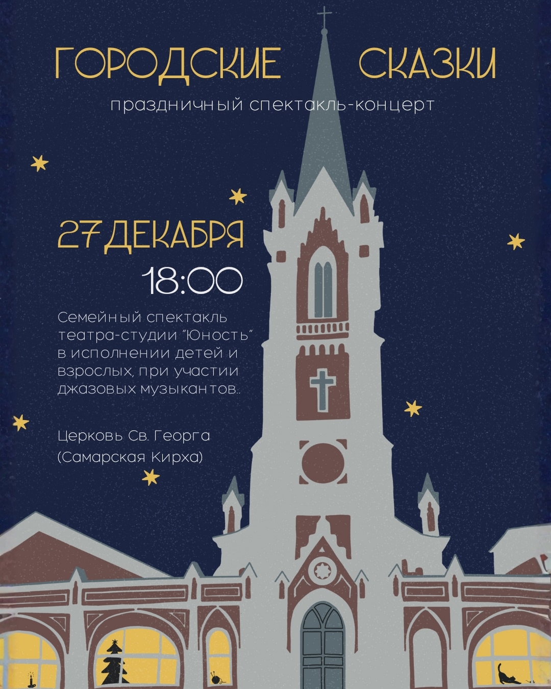 В субботу, 27 декабря, в самарской кирхе на улице Куйбышева, 115/117 состоится праздничный спектакль-концерт «Городские сказки» по мотивам рождественских новелл.