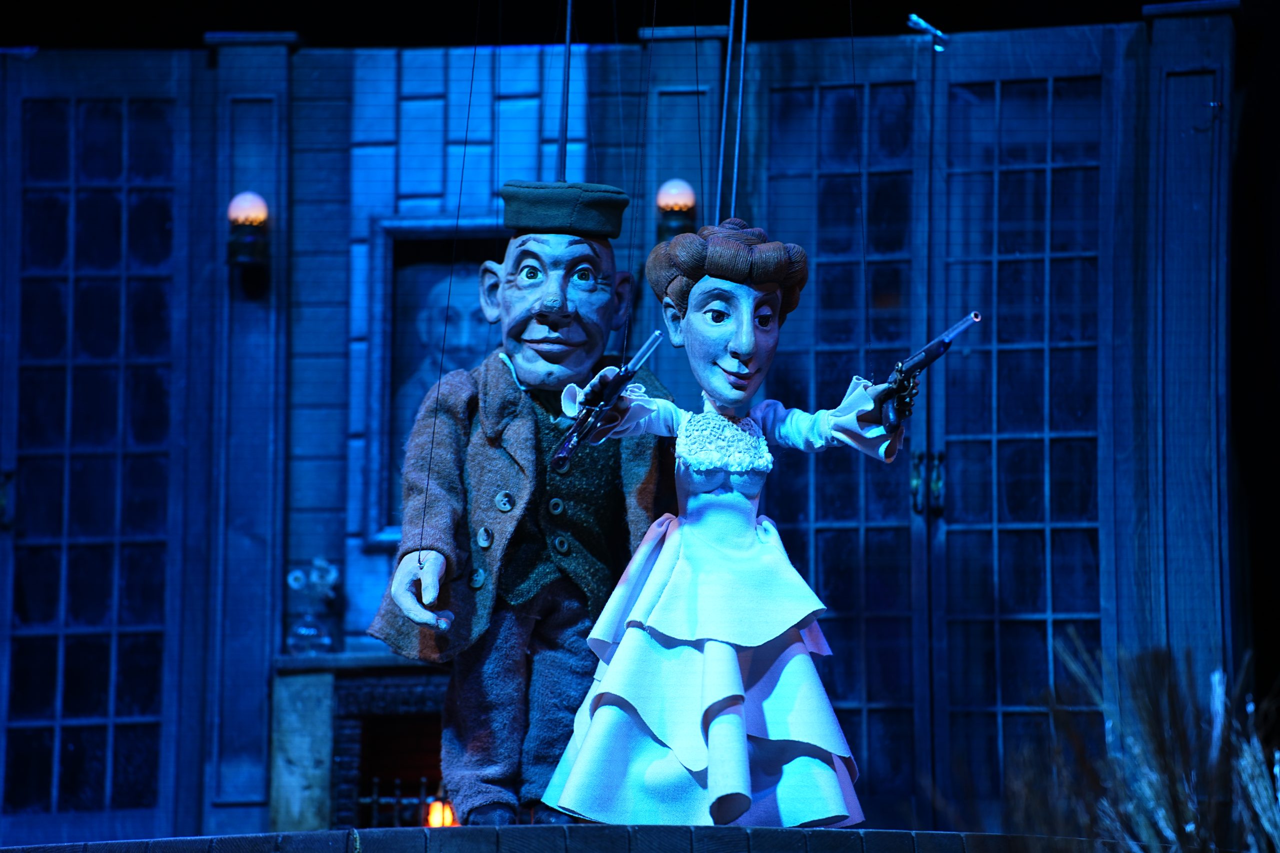 В один момент мы видим ссору кукол, в следующий — те же эмоции, те же жесты, но уже в исполнении живых людей, которые выходят на авансцену без помощи кукол.