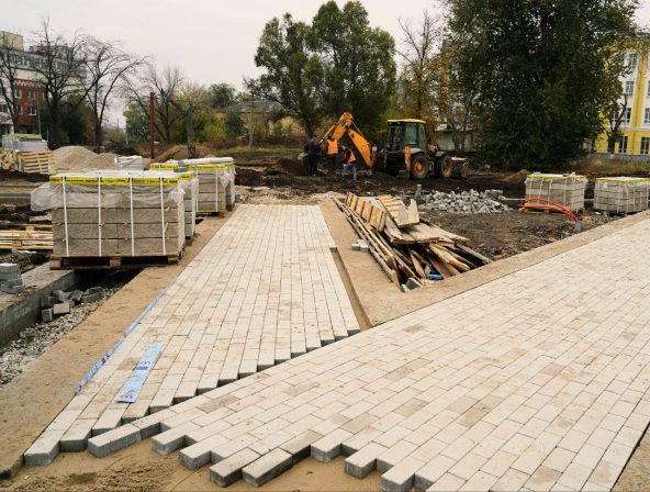 В 2025 году здесь убрали старый асфальт, начали обустраивать пешеходные дорожки, а также парковочные места.