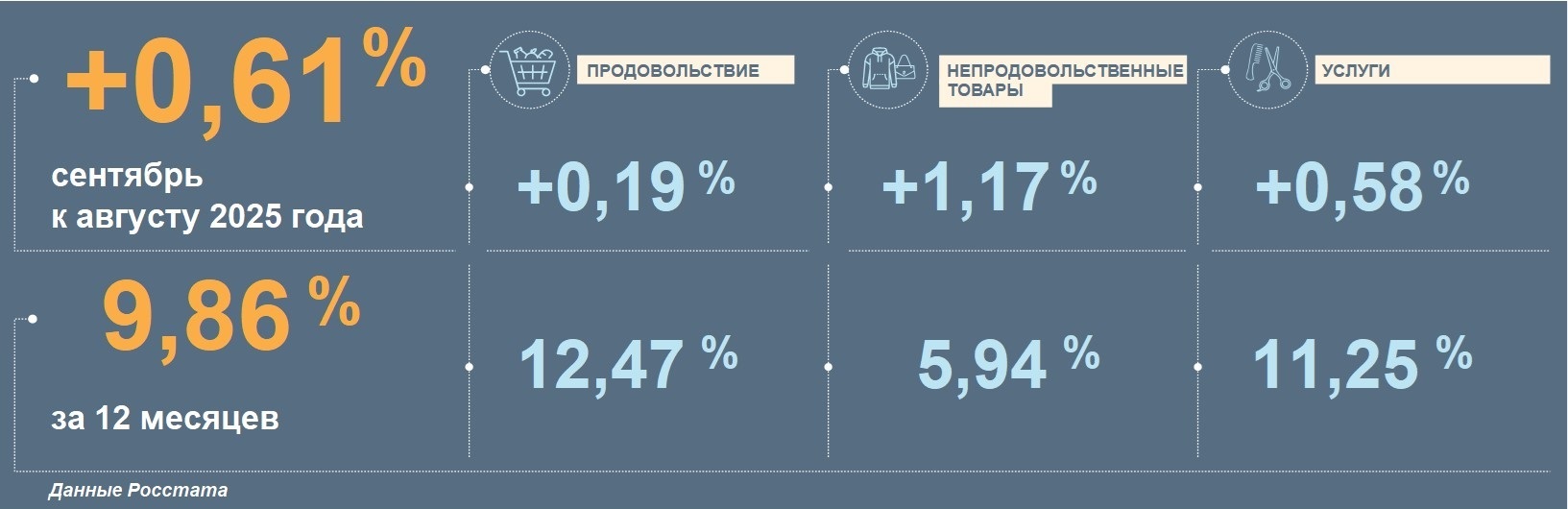 Росстат представил информацию о динамике цен на потребительские товары в регионах России и по стране в целом за сентябрь 2025 года.