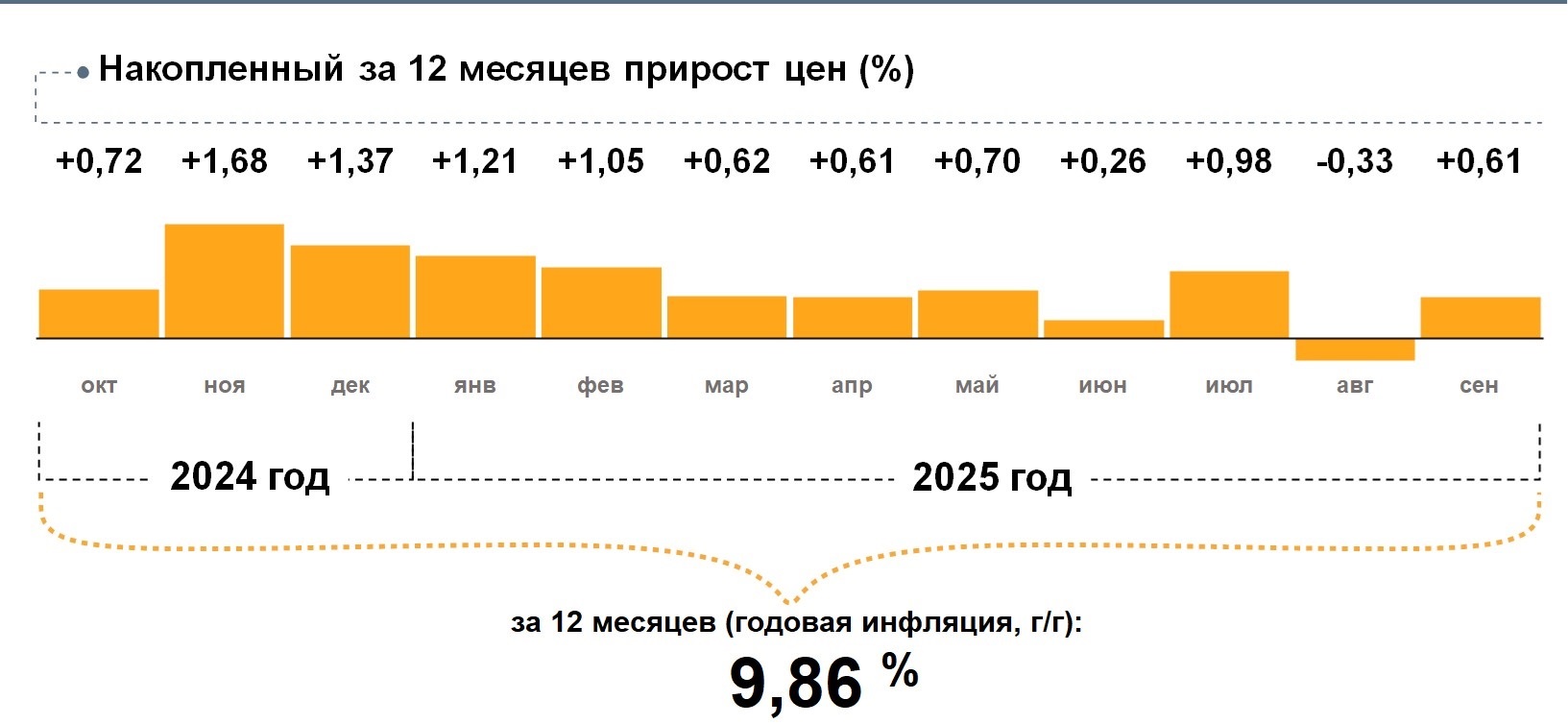 С сентября 2024 года по сентябрь цены в регионе продолжали расти. Некоторое снижение наблюдалось лишь в августе.