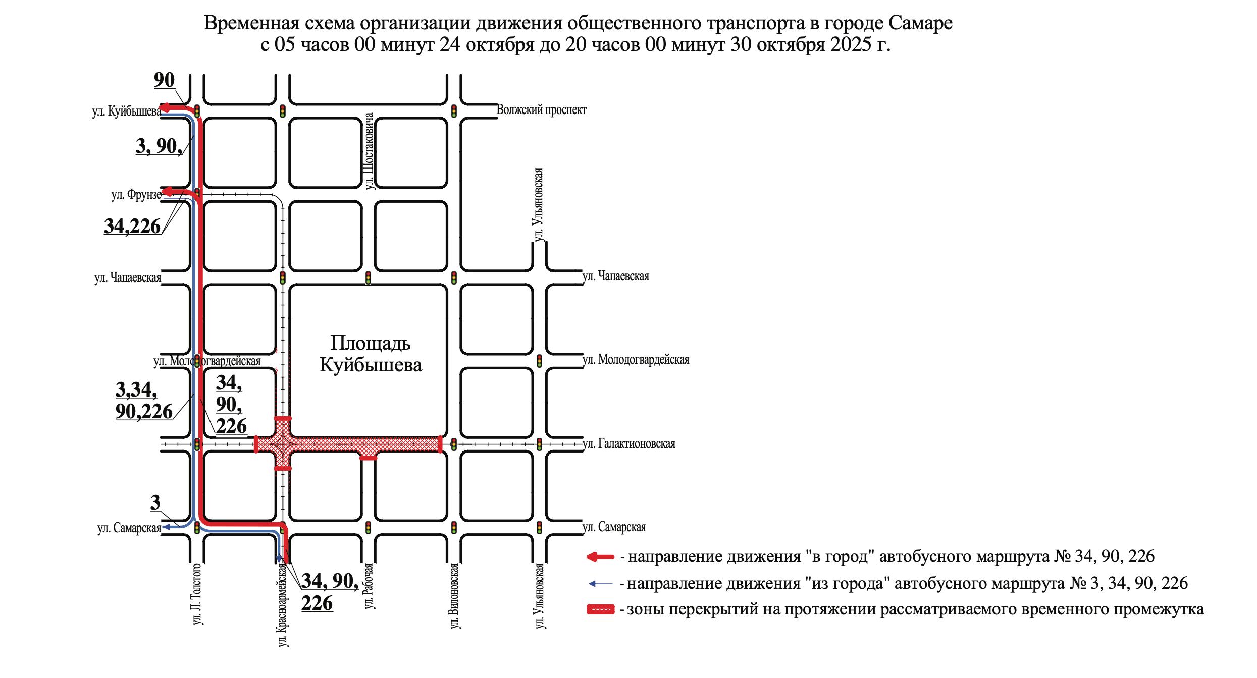 Автобусы маршрутов №№ 3, 34, 90 и 226 будут ходить по улице Льва Толстого.