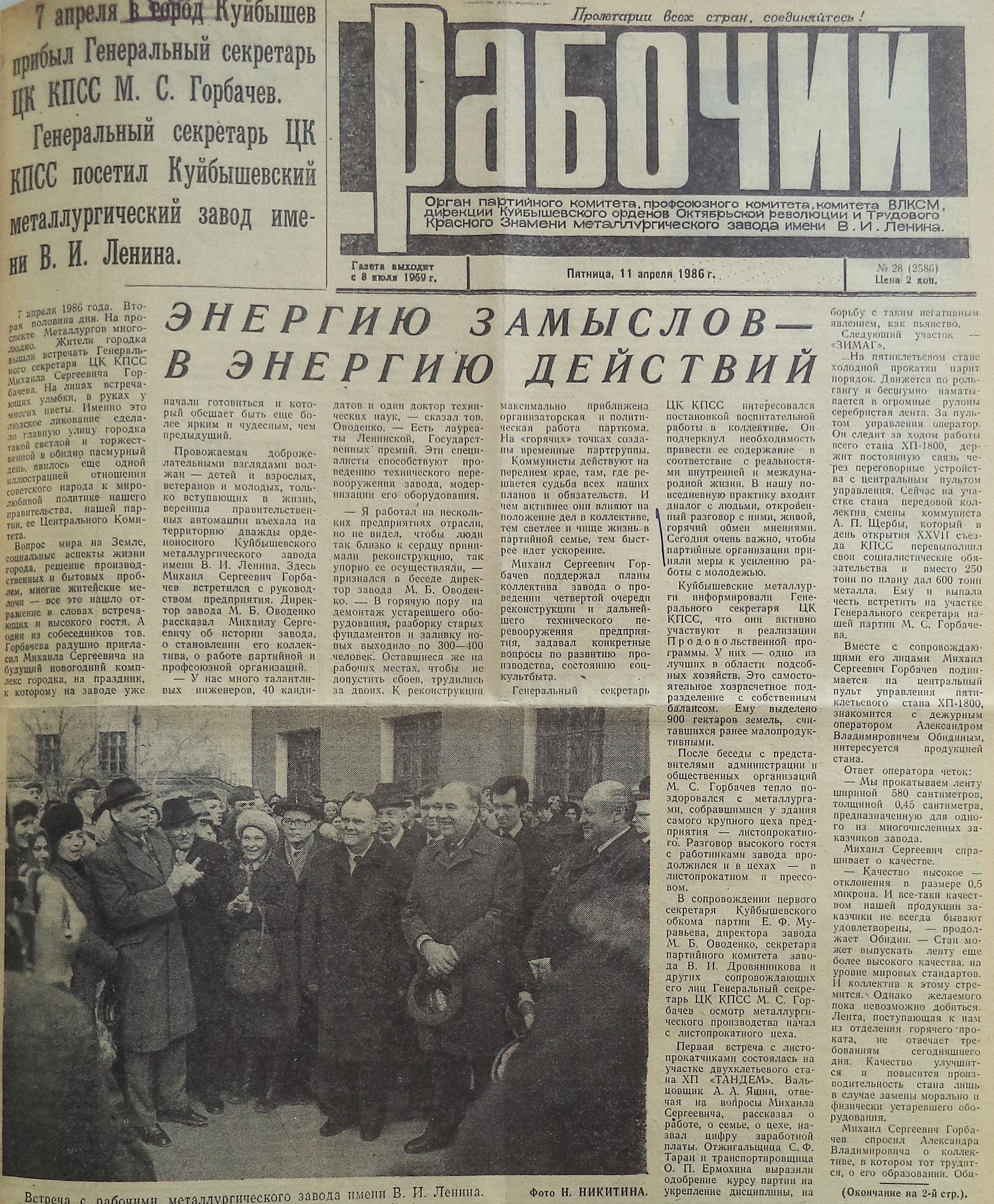 7 апреля 1986 года самарскую землю посетил последний генеральный секретарь ЦК КПСС Михаил Сергеевич Горбачев.