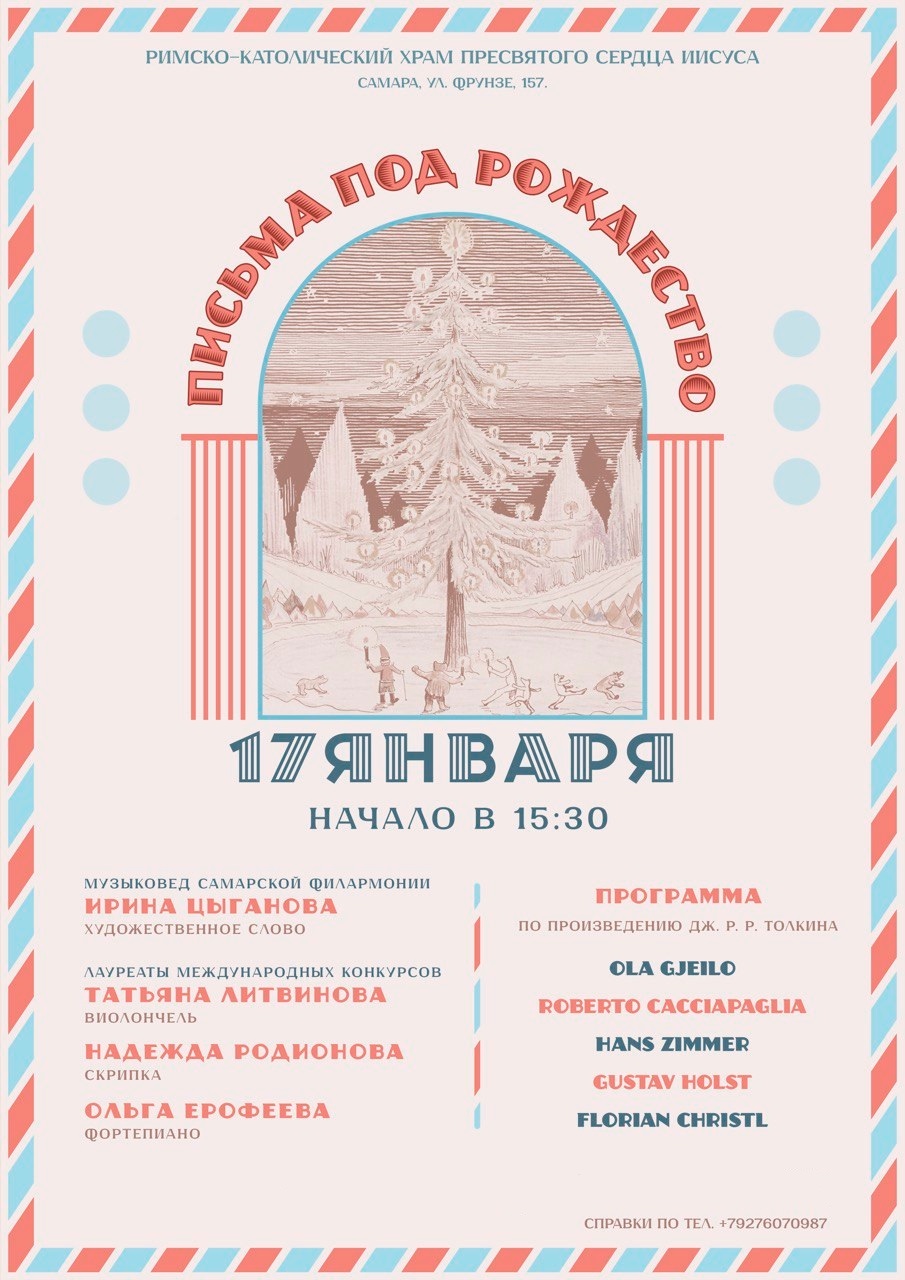 В субботу, 17 января, в Храме Пресвятого Сердца Иисуса на улице Фрунзе, 157 состоится концерт «Письма под Рождество».