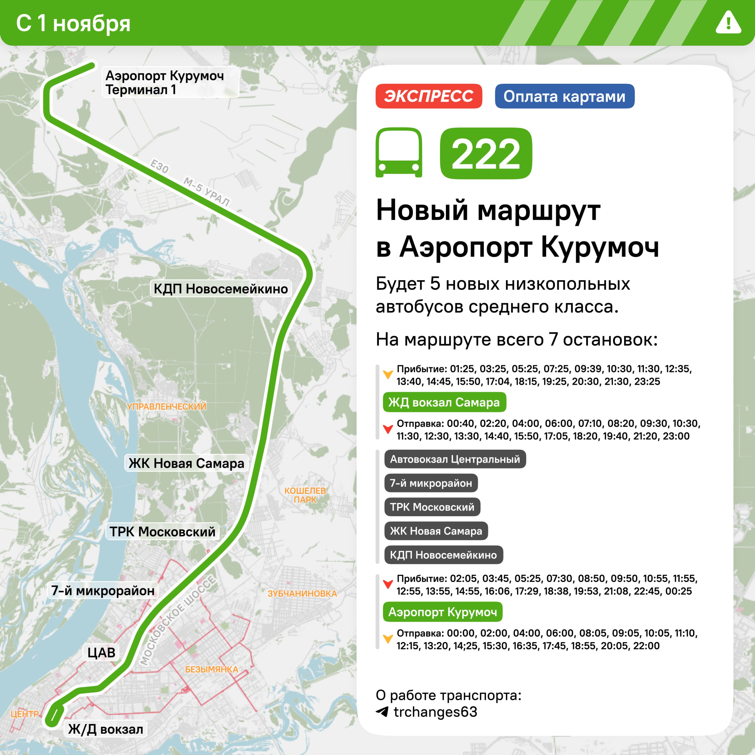 С 1 ноября 2025 года запускается автобусный маршрут №222 из Самары в аэропорт «Курумоч».