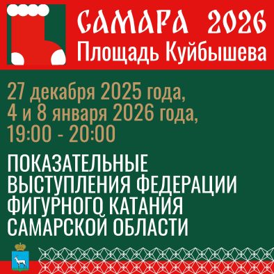 Там же 1, 2 и 7 января с 17:00 до 21:00 будут выступать самарские артисты. А 27 декабря, 4 и 8 января с 19:00 до 20:00 пройдут показательные выступления от Федерации фигурного катания.