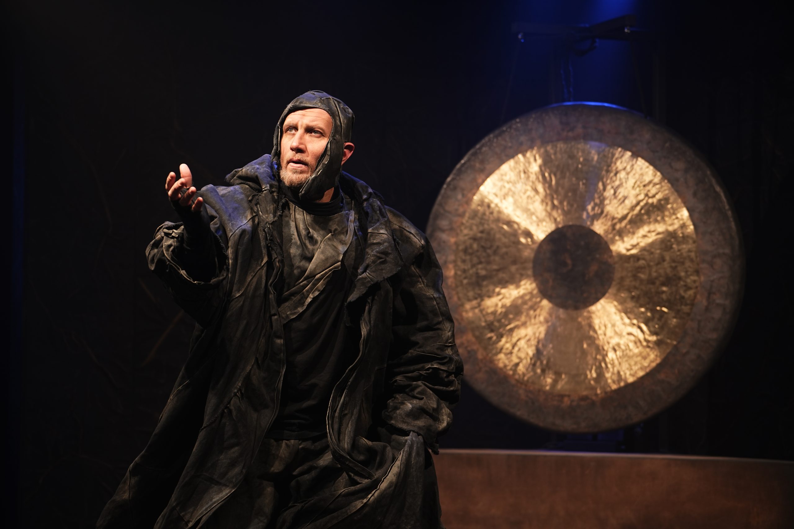 А в глубине сцены огромный гонг, инструмент не музыкальный, а философский. Каждый его звук — удар по сознанию. Он отмечает не только смену действия, но и смену решения, мысли или веры.