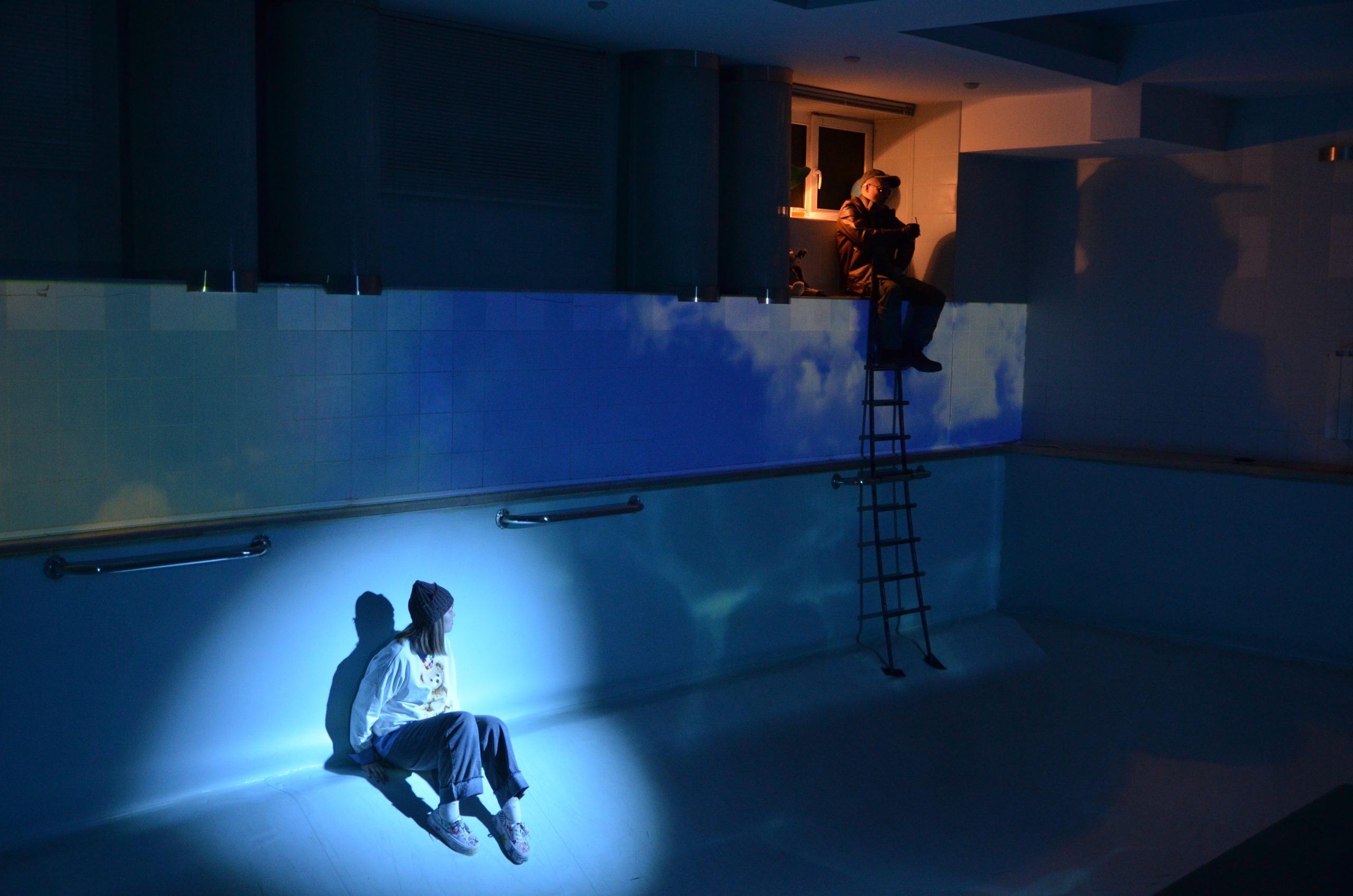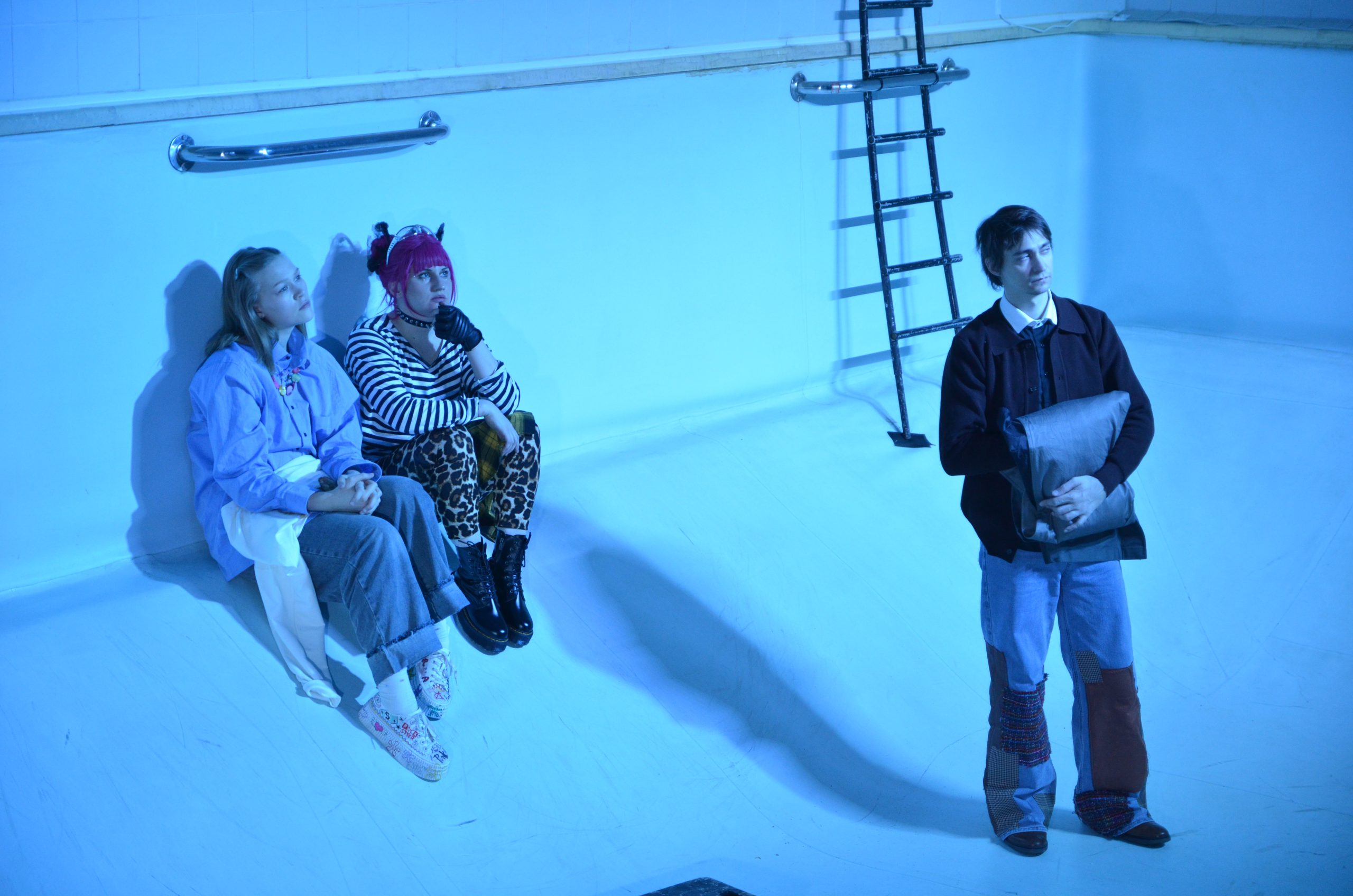 Бетонные стены бассейна становятся стенами района Д.К.В., вода (пусть и воображаемая) напоминает о прудах из пьесы, а теснота зала заставляет зрителей чувствовать дыхание друг друга.