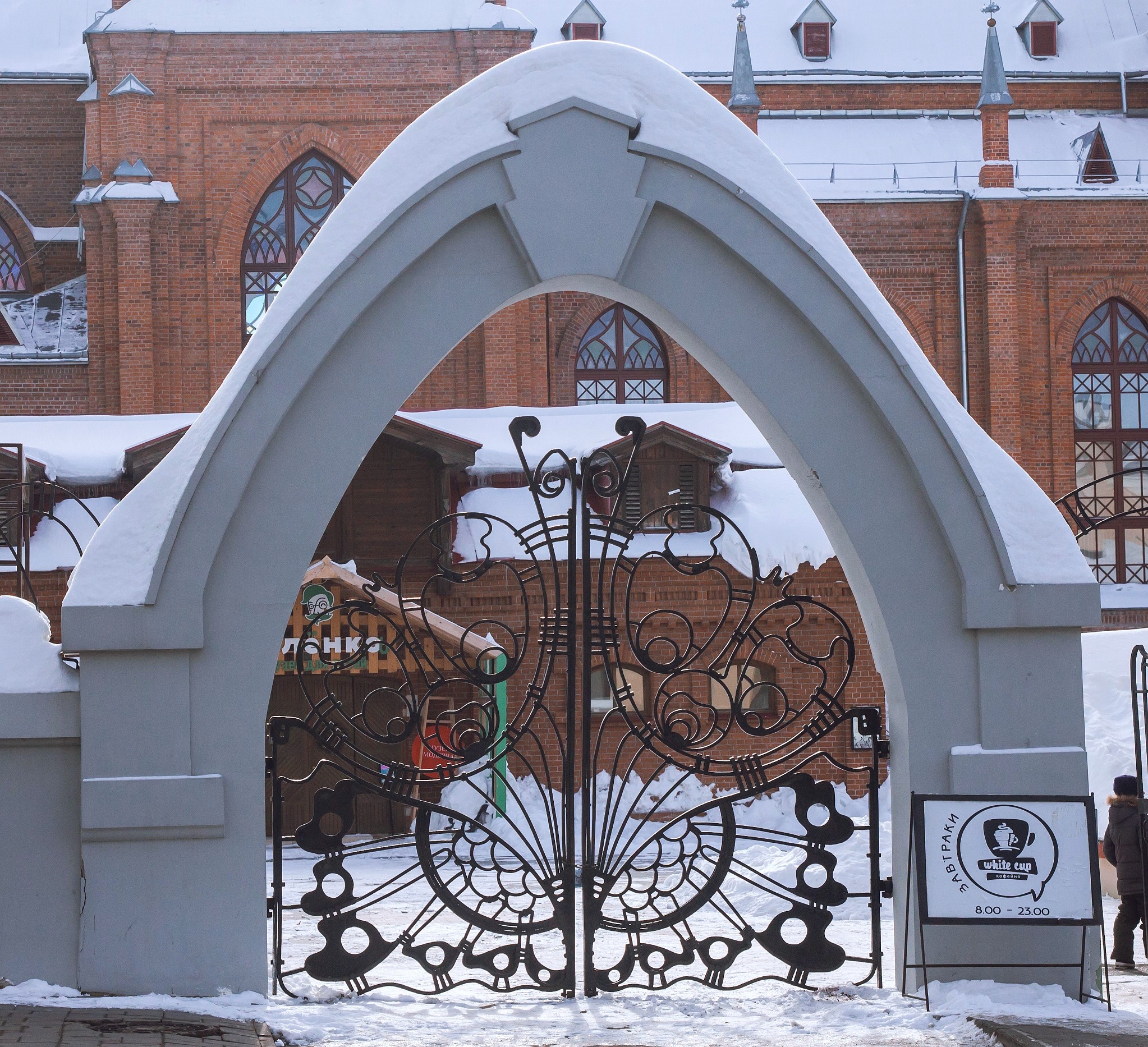 Пожалуй, самый узнаваемый кованый элемент, известный и за пределами нашего города, – ворота модернового особняка купеческой четы Курлиных (Красноармейская, 15).