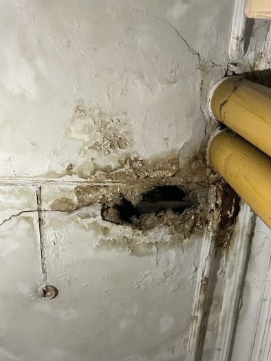 «Крыша течёт более десяти лет. Вода стекает по стенам, размывает штукатурку, подтачивает балки.