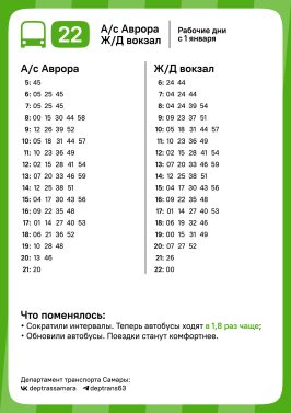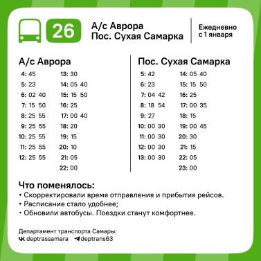 На маршруте № 26, связывающем автостанцию «Аврора» и посёлок Сухая Самарка, скорректировано время отправления и прибытия рейсов.