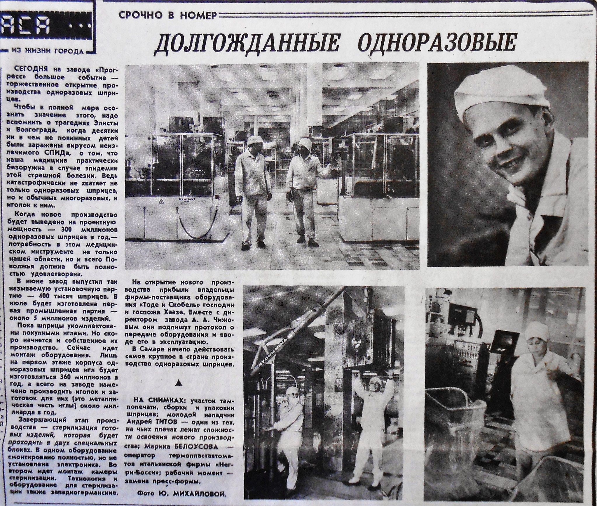 В июле 1991 года здесь стали производить одноразовые шприцы.