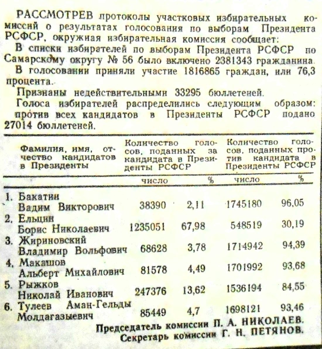 Но Борис Ельцин победил своих оппонентов, набрав 57,3% голосов избирателей. Притом в Самаре этот показатель был выше, чем по стране.