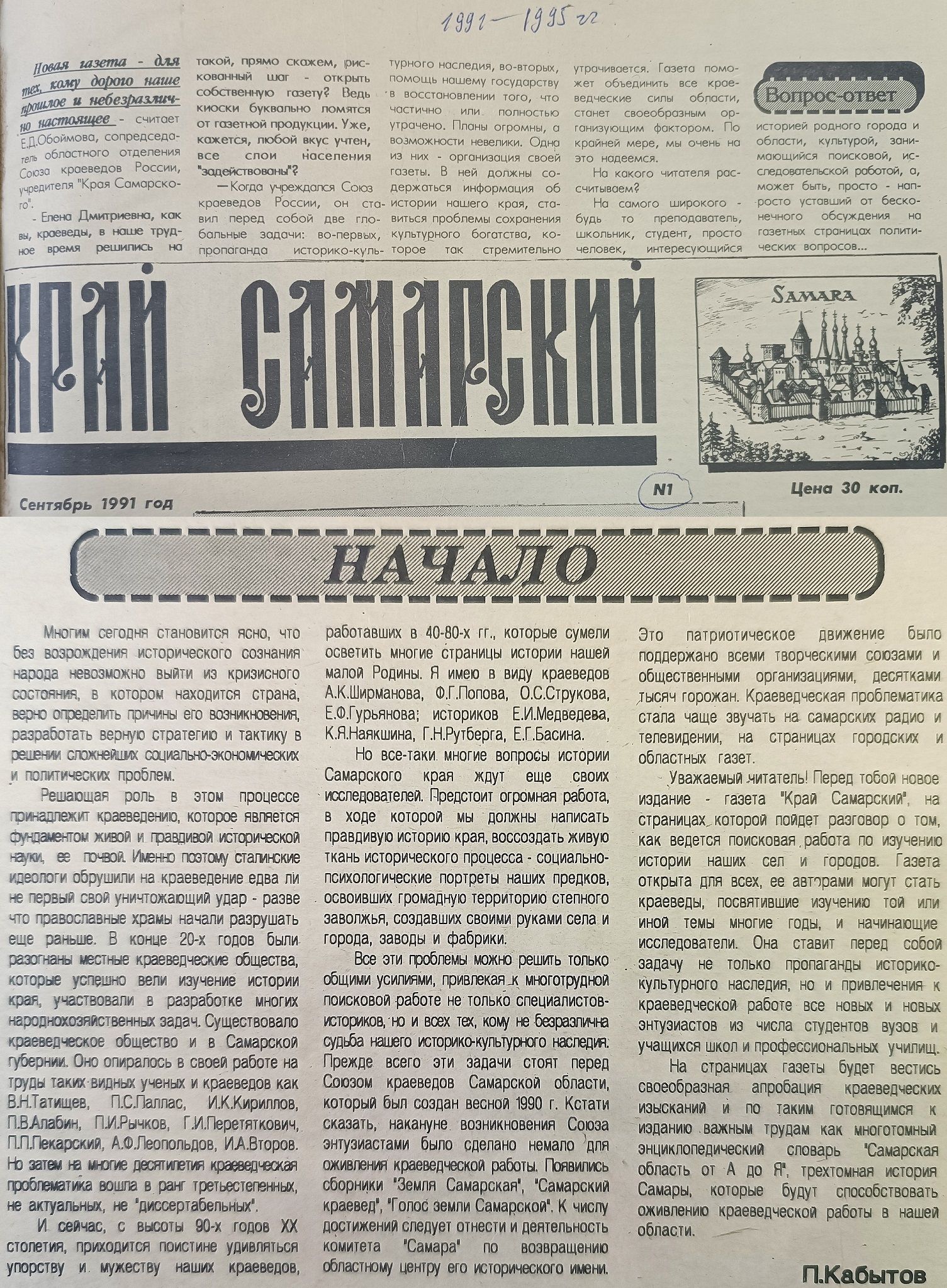 Сегодня на очереди временной отрезок с 1991 по 1995 год — новейшая история нашего города.