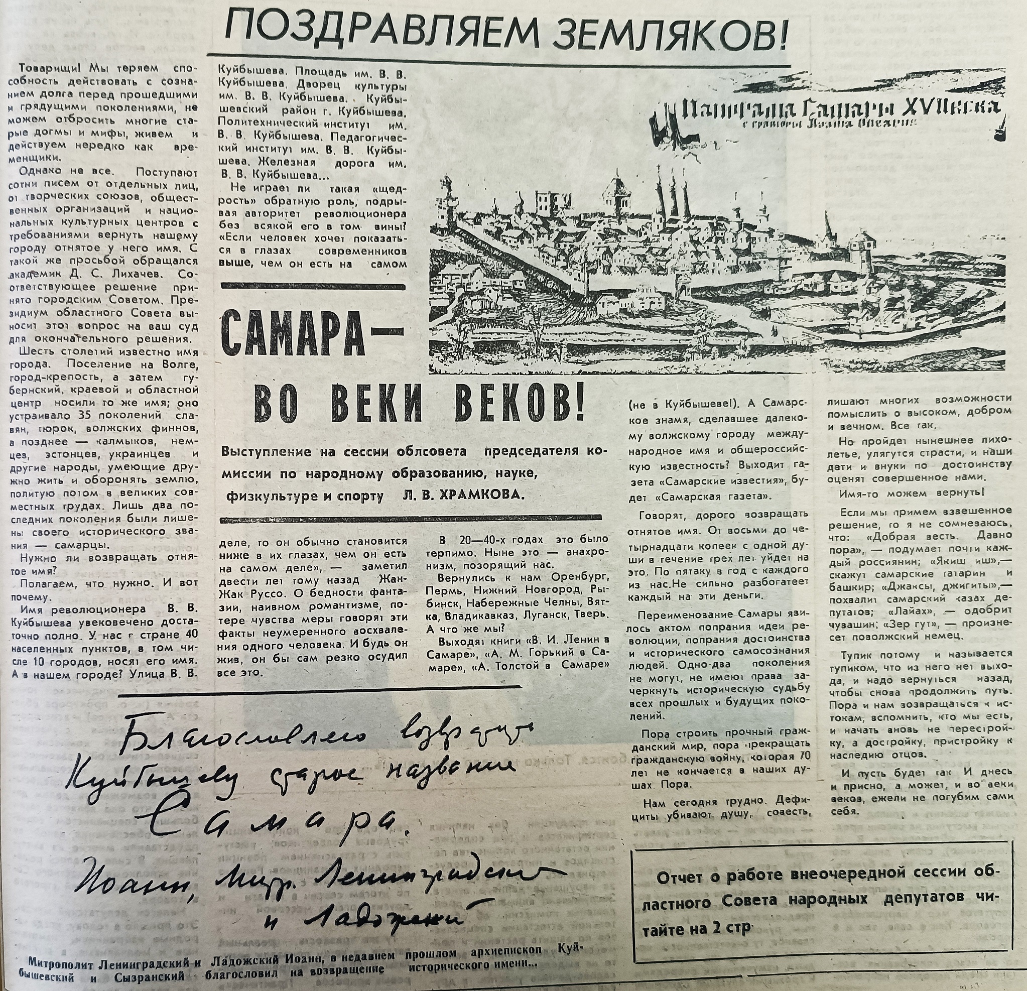 Последним оплотом сопротивления был уже упомянутый областной Совет народных депутатов. Добиться переименования Куйбышевской области в Самарскую удалось лишь с третьего раза. На решающее заседание 20 декабря 1990 года приехал ректор Куйбышевского университета Ленар Храмков, чья пламенная речь смогла убедить депутатов.