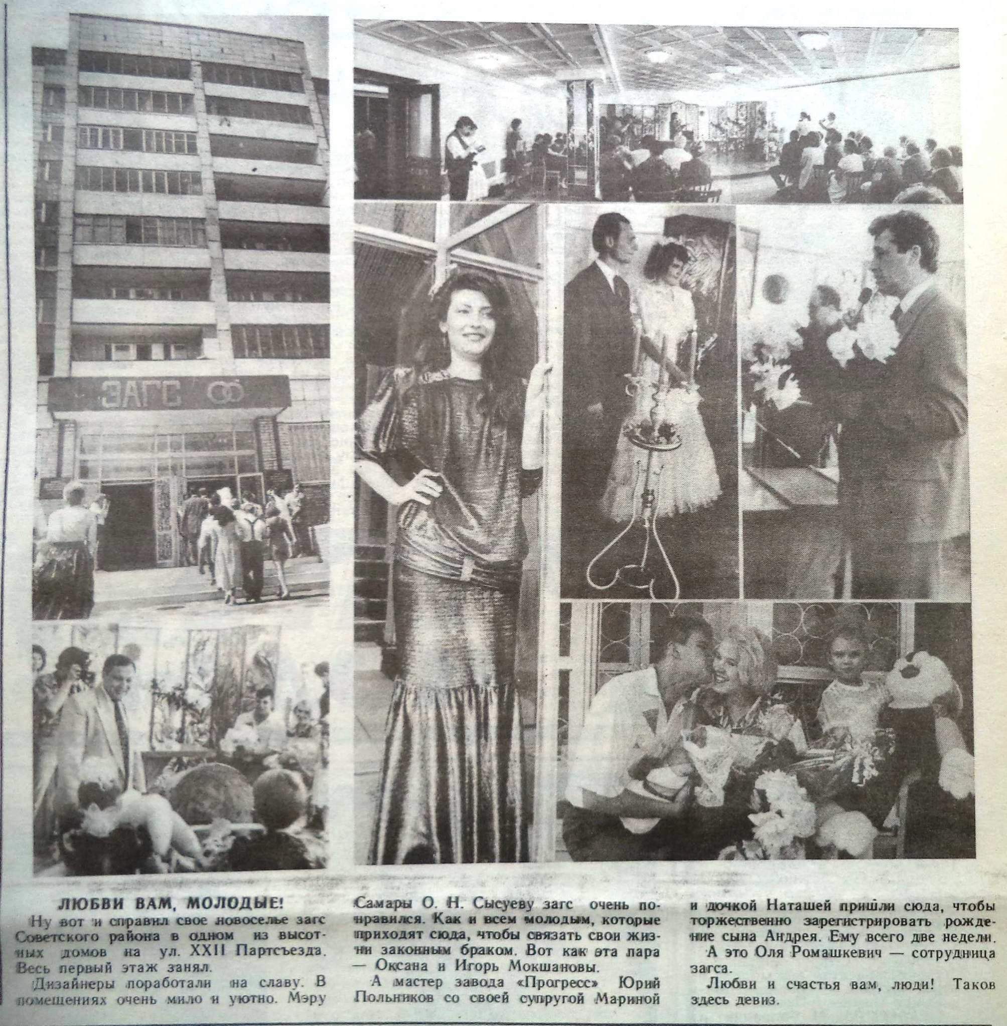 Переехал ЗАГС Советского района в девятиэтажку (22 Партсъезда, 46), возведенную силами завода «Прогресс». На открытии присутствовал мэр Самары Олег Сысуев.
