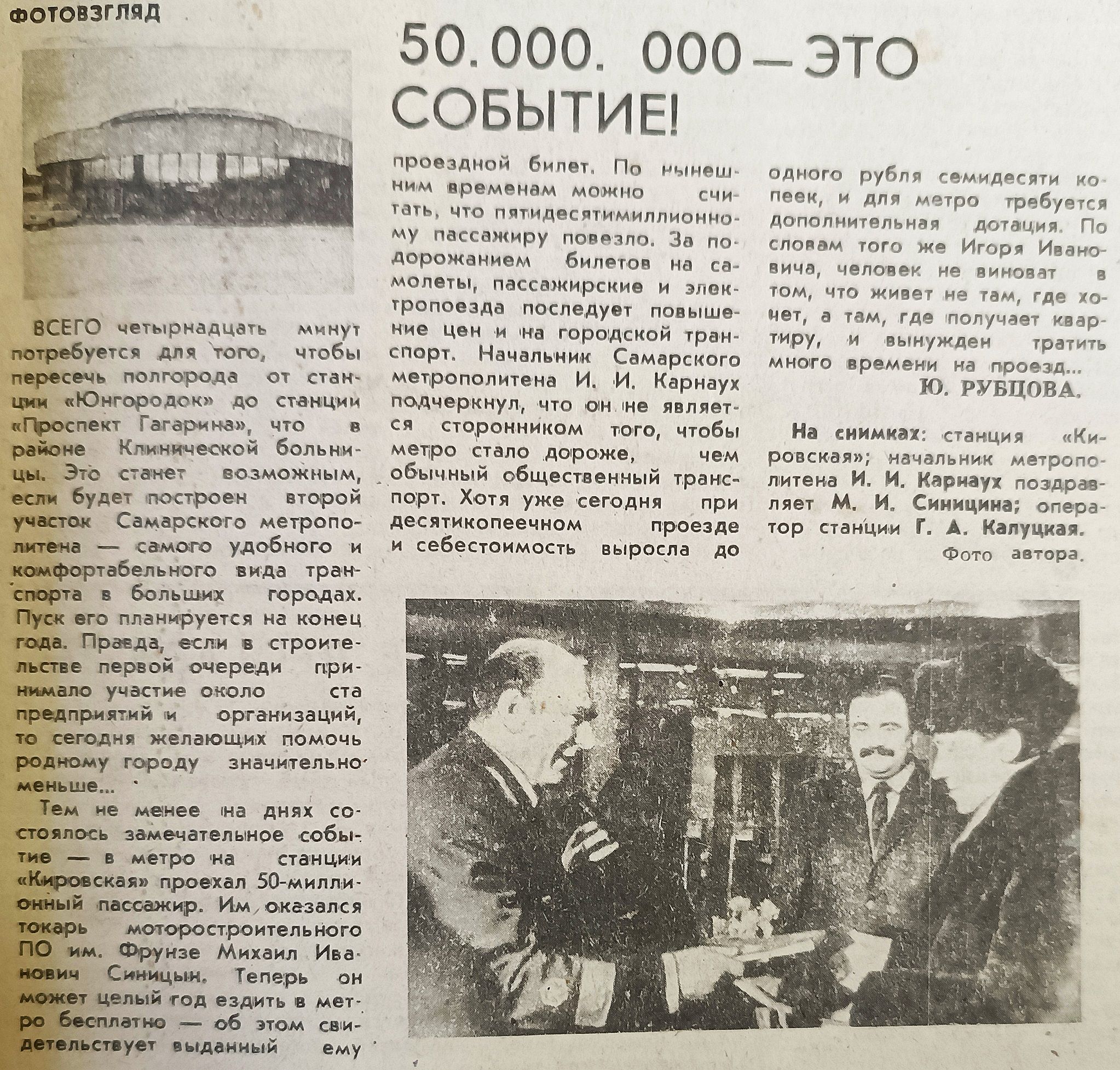 Отметим, что в начале того же года самарская подземка взяла рубеж в 50 миллионов перевезенных пассажиров. Заметку об этом опубликовала 14 января газета «Волжская коммуна».