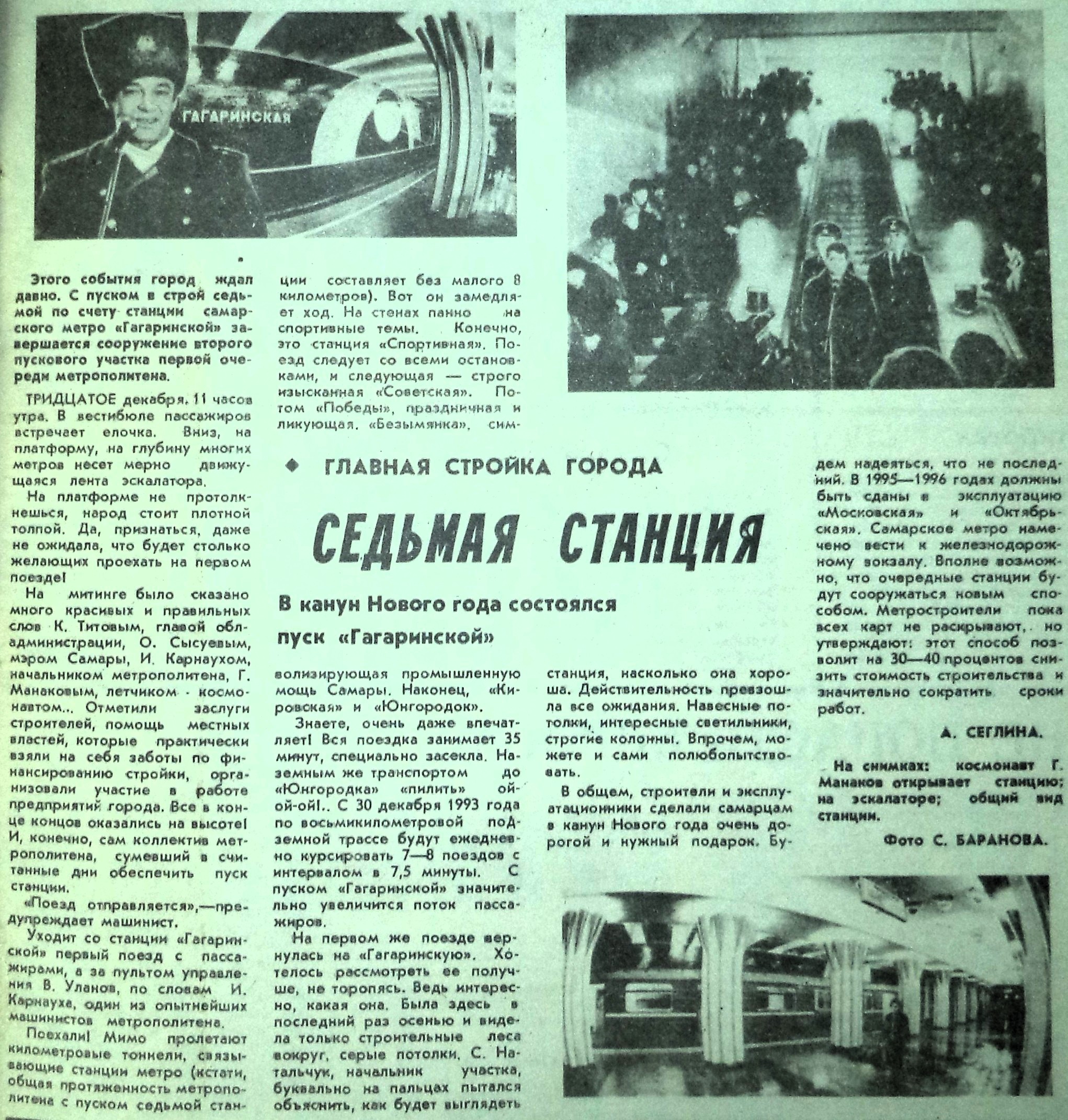 Седьмая станция метрополитена — «Гагаринская» — залегала глубже других и была окружена обводненными грунтами, что затрудняло строительные работы. Однако, несмотря на это, ее удалось сдать до конца 1993 года.