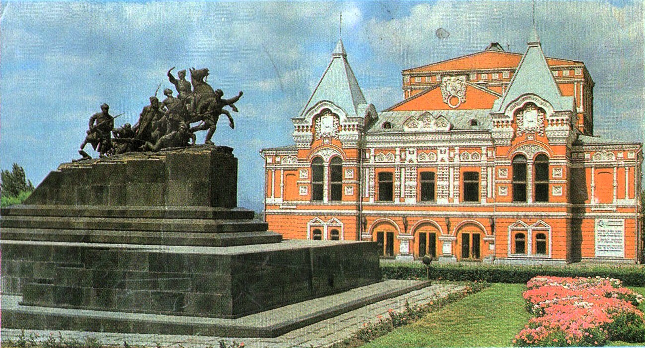 Драматический театр и памятник Чапаеву.