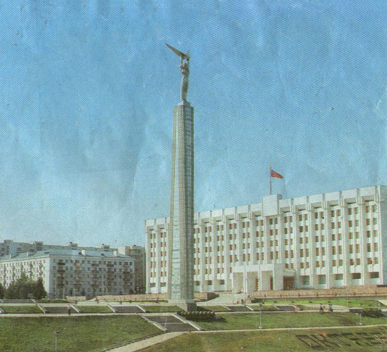 Площадь Славы. С момента своего появления она стабильно попадала почти во все краеведческие издания и комплекты открыток, но без одного из своих главных элементов — Дома советов, который возвели только в 1986 году.