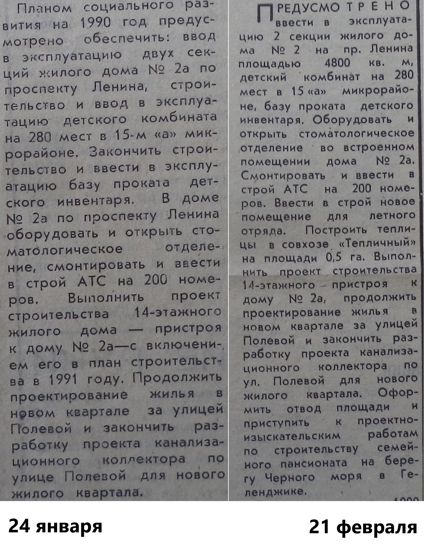 Строительные планы ЦСКБ на 1990 год. ЦСКБ строило детский сад № 462 в 15а микрорайоне и готовилось к возведению пристроя к дому 2а по проспекту Ленина.