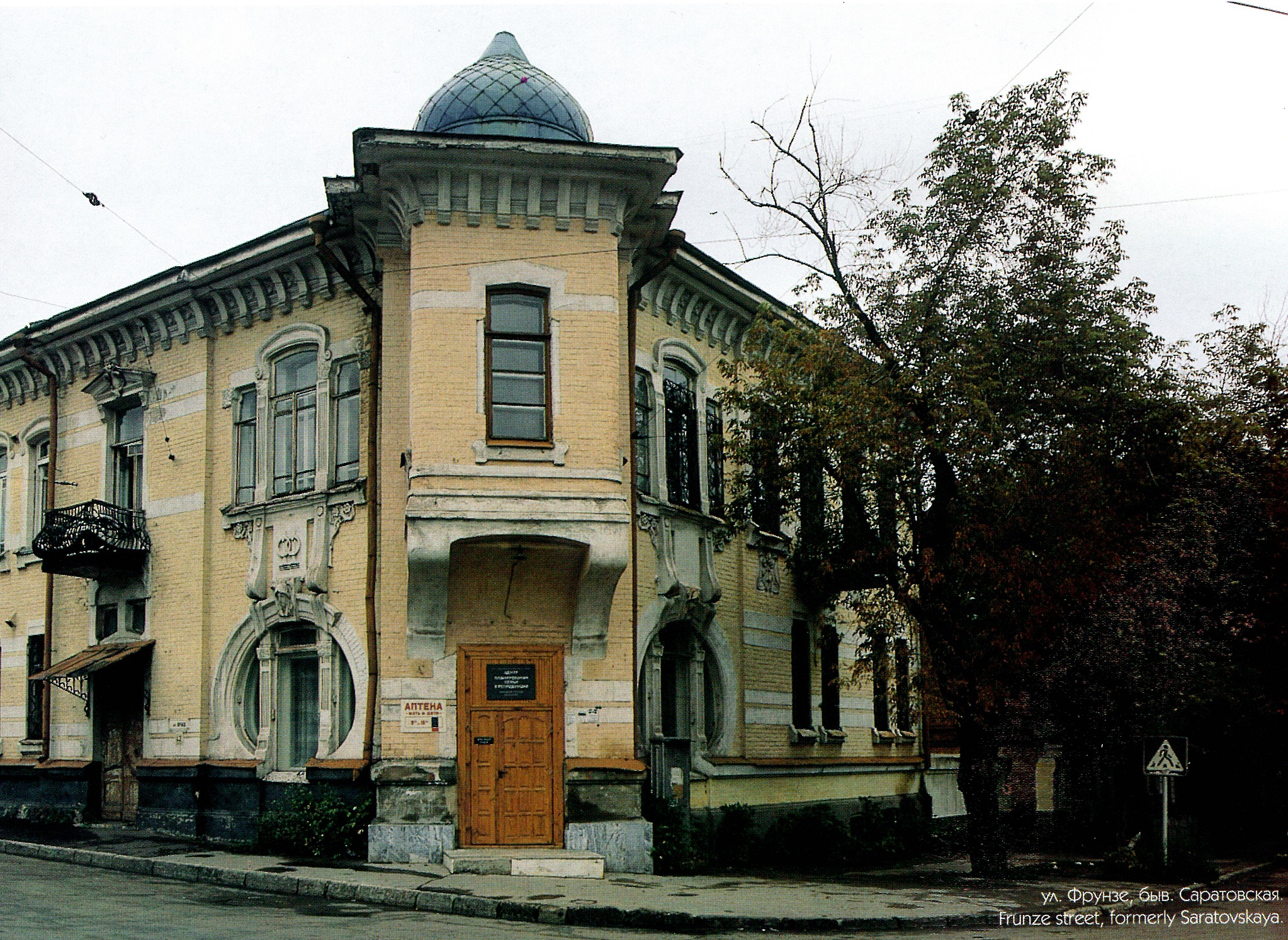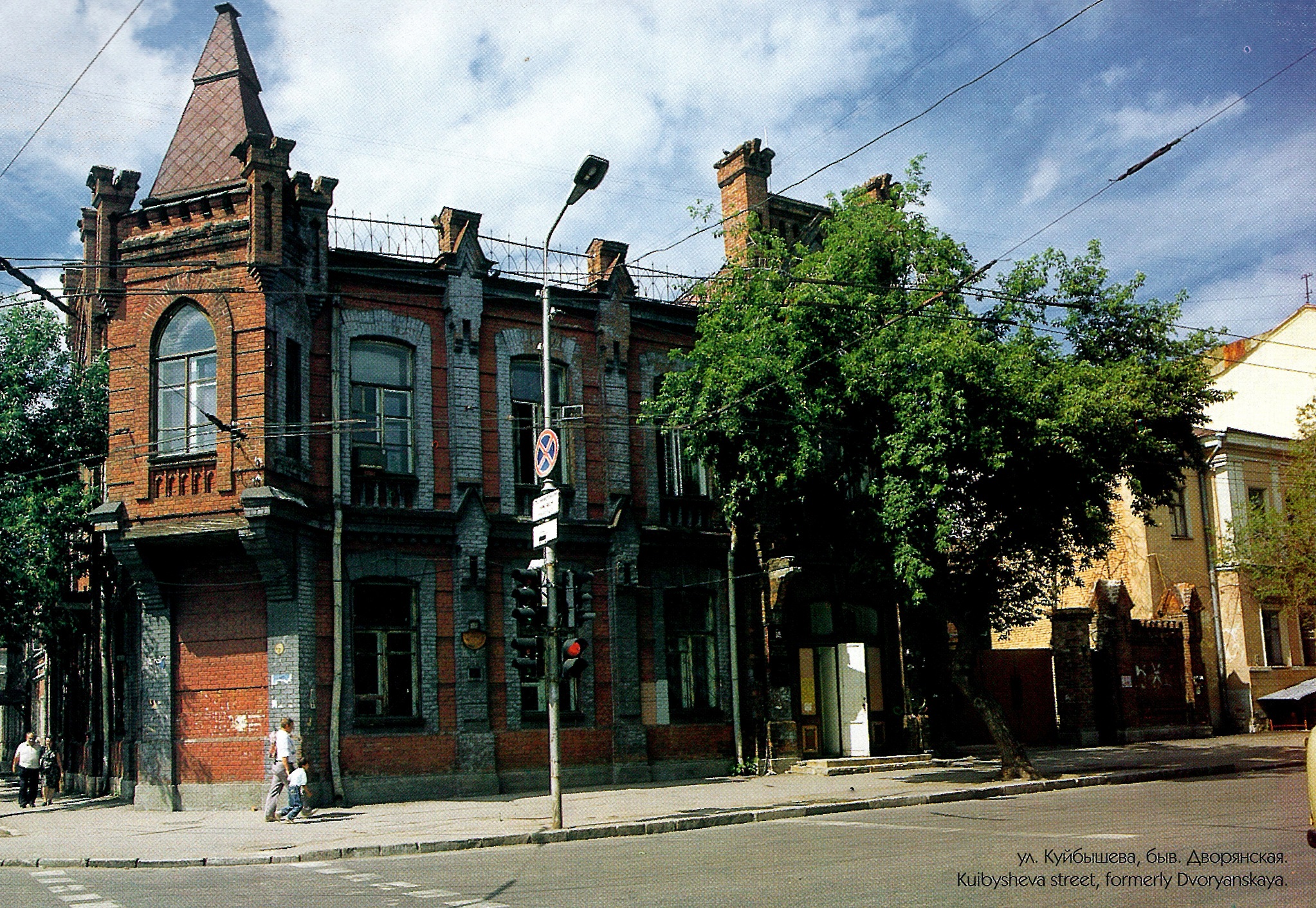 На соседнем перекрестке — Пионерской и Фрунзе — в кадр попал дом купца Александра Борщова, построенный в стиле модерн.