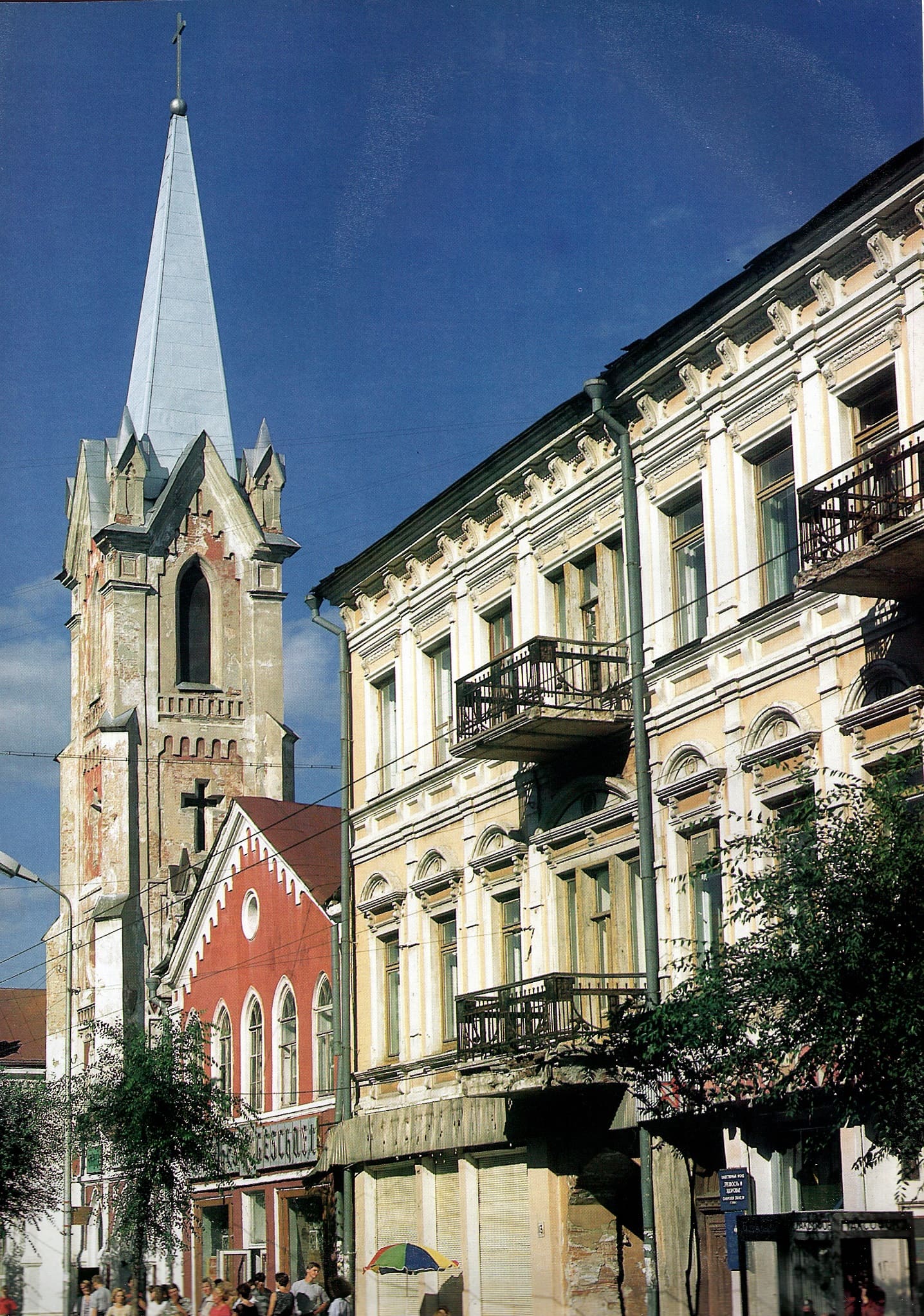 А вот уже улица Куйбышева и одна из ее главных достопримечательностей — лютеранская кирха. О том, как ее и другие храмы Самары в первой половине 1990-х годов возвращали верующим, вы можете прочесть здесь.