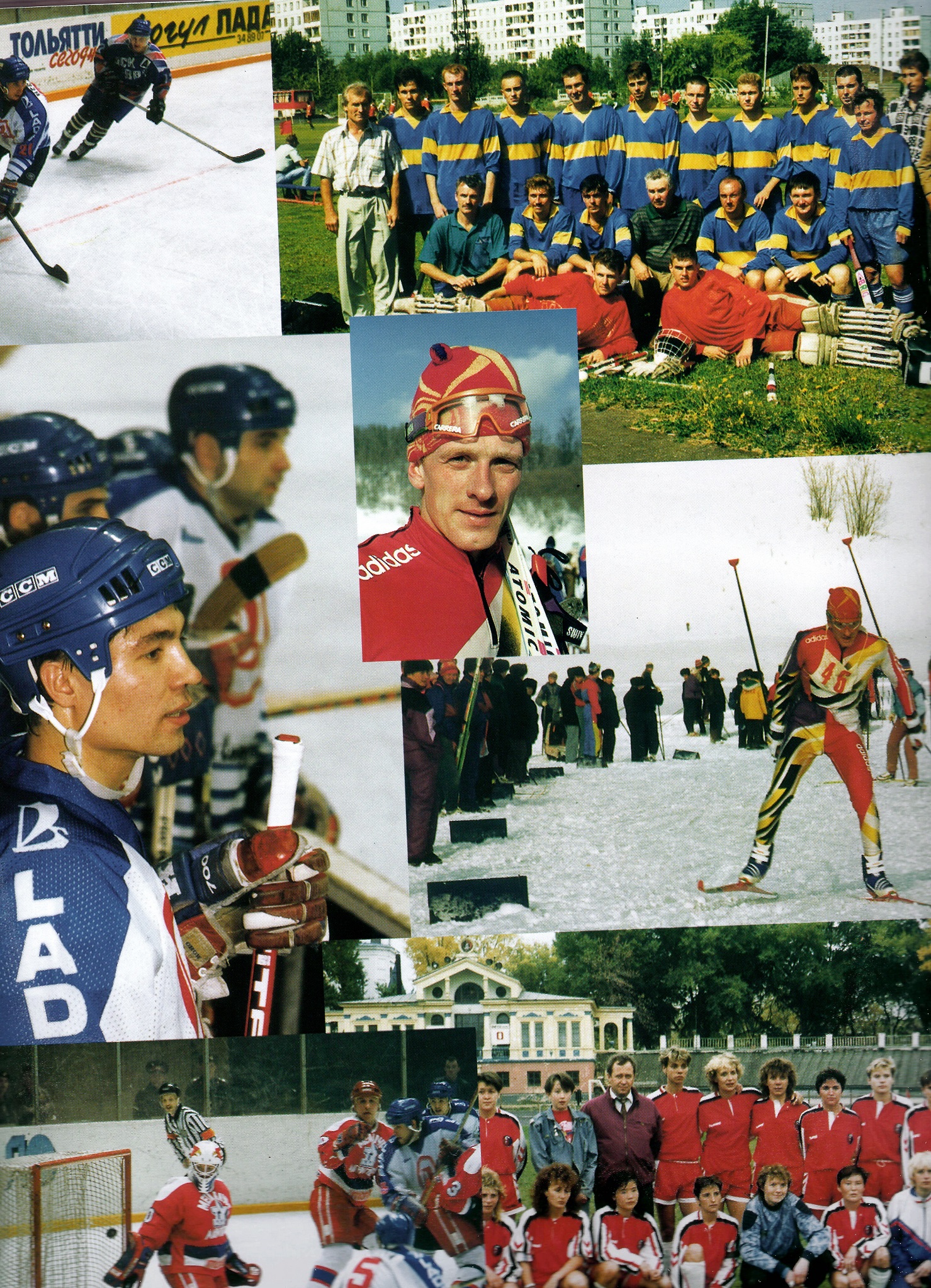 Завершим мы знакомство с фотоальбомом «Самарский край» на теме спорта. На следующем коллаже вы можете увидеть хоккеистов «ЦСК ВВС» и тольяттинской «Лады» и команду по хоккею на траве, запечатленную на поле стадиона «Торпедо-4».